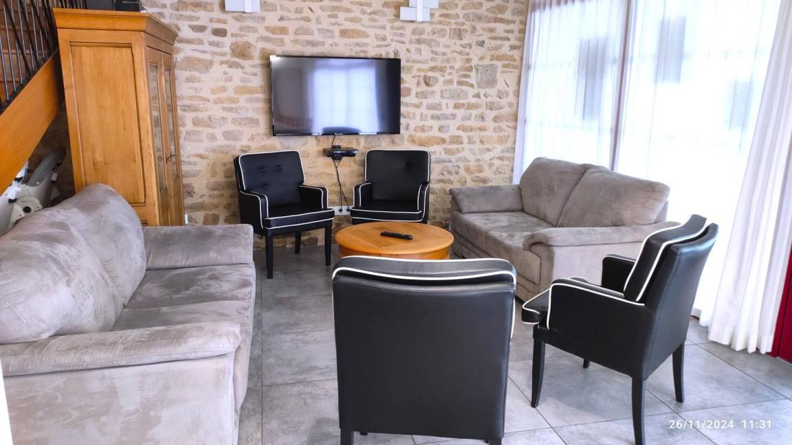 „Super week end dans ce magnifique gite très bien équipé, les chambres sont spacieuses et confortables, la pièce de vie est très agréable et permet de réunir une grande famille ou un grand groupe d'amis. Le plus: La piscine chauffée avec accès direct, les enfants ont adoré ! La cuisine est très bien équipée également. Commerces à proximité à pied (boulangerie ouverte 7j/7). Une belle terrasse et un très grand jardin à l'abri des regards...C'était notre 3 éme séjour, nous reviendrons !“