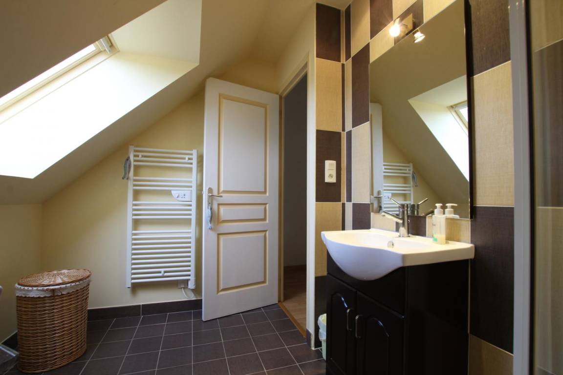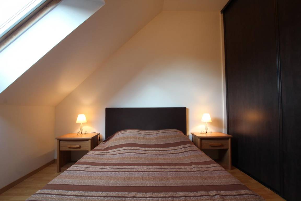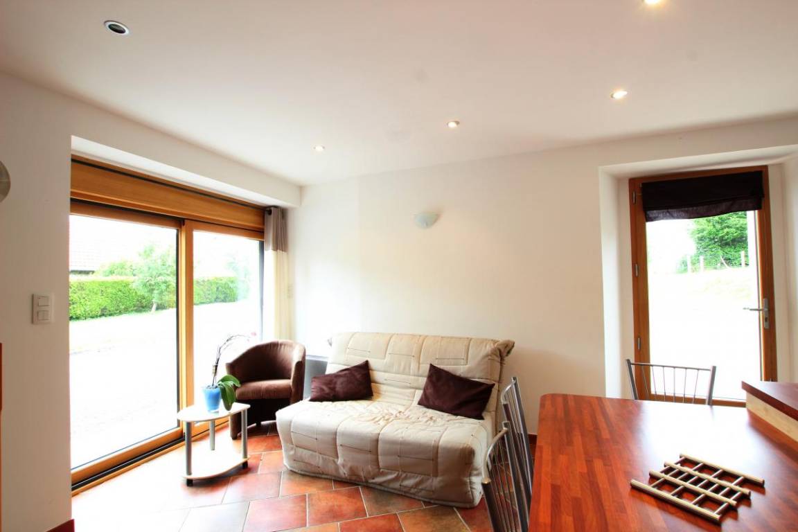 Doppelhaushälfte neben dem Haus des Eigentümers. Ausgestattete Küche (Backofen, Geschirrspüler) mit Zugang zum Wohn-/Esszimmer (TV, WLAN). WC (Waschmaschine). Obergeschoss: Schlafzimmer (1 Doppelbett 140 x 190 cm). Duschbad. WC. Babyausstattung. Bettwäsche vorhanden. Das Bett ist bei Ankunft bezogen. Elektrische Heizung und Endreinigung sind nicht im Preis inbegriffen. Gemeinsamer, umzäunter Garten. Terrasse. Gartenmöbel. Grill.