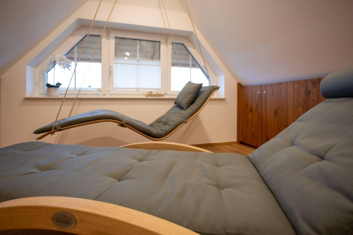 Diese Ferienhaus ist mit hochwertigen Möbeln und liebevollen Details ausgestattet. Wir möchten Ihnen den Aufenthalt so angenehm wie möglich machen. Ob Sie beim Kochen oder am Abend einen Film ansehen möchten, unser schwenkbarer Smart TV lässt keine Wünsche offen. 160 Sender inklusive. Sie möchten Ihre aktuelle Playliste auch im Urlaub geniesen, nutzen Sie unsere Bluetooth Lautsprecher in den Schlafzimmern oder im Wohnzimmer. Lassen Sie den Abend lieber mit einem knisternden Kaminfeuer ausklingen? Brennholz und Weingläser haben wir auch für Sie bereitgestellt. Sie möchten nicht einfach nur in der Sauna schwitzen! Bei uns bekommen Sie immer ein kleines Extra dazu. Wählen Sie aus einer umfangreichen Auswahl an Düften nach Ihrem aktuellen Gemütszustand. Enspannen Sie danach in unserer Hägeliege unter dem Dach oder in einen der Wellnessliegen.