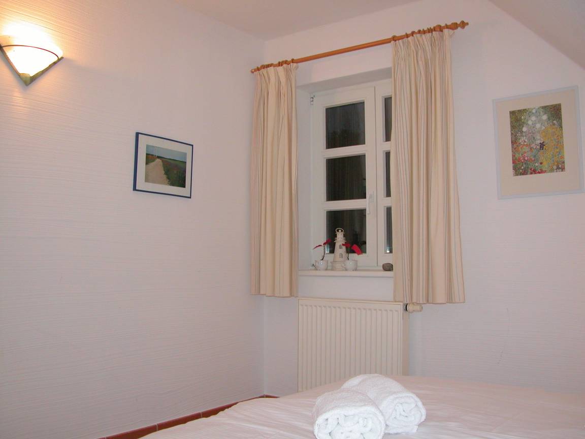 2 Zimmer ca. 40 qm für 1-4 Personen, DG im Ferienparadies Rugana, Nonnevitz 25 a+b, 18556 Dranske-Bakenberg. Wohnzimmer mit Schlafcouch, Sitzgarnitur, TV/Radio, Esstisch, Küchenzeile mit Spülmaschine, Schlafzimmer mit Doppelbett. Dusche/ WC.