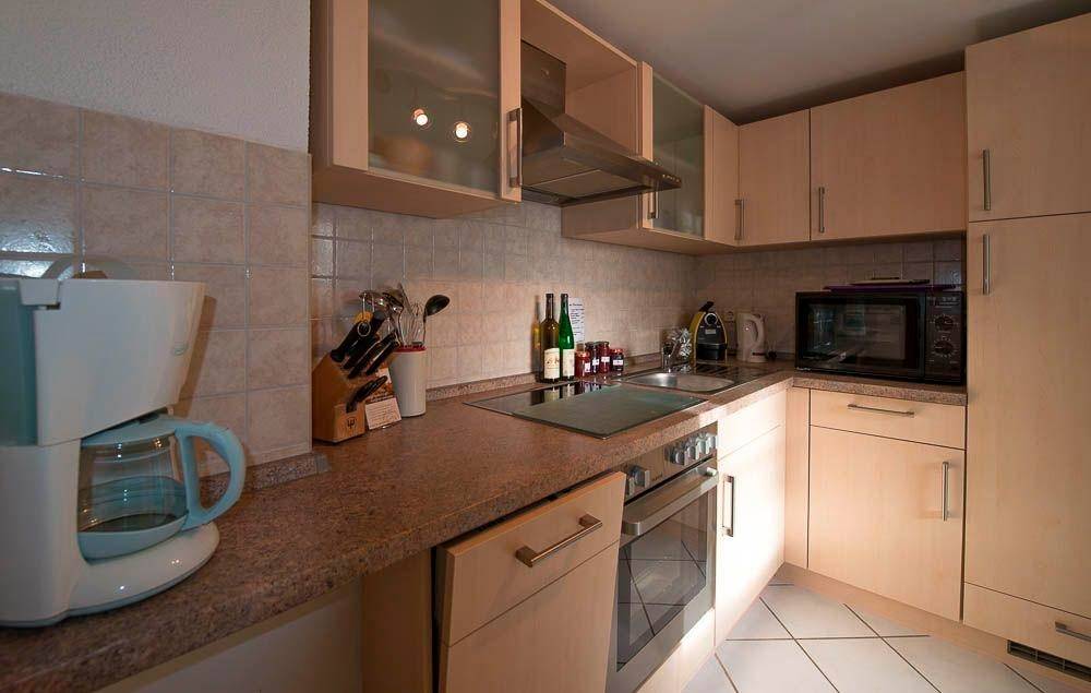 4-Zonen Cerankochfeld, Backofen, Brotmaschine, Bügeleisen, Dunstabzugshaube, Eierkocher, Einbauküche, Geschirrspüler, Kaffeemaschine, Kühlschrank, Mikrowelle, Mixer, Staubsauger, Toaster, Wasserkocher