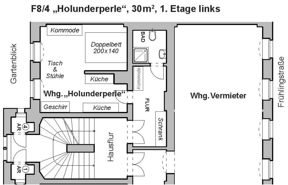 30 m² Ferienwohnung ∙ 1 Schlafzimmer ∙ 2 Gäste
