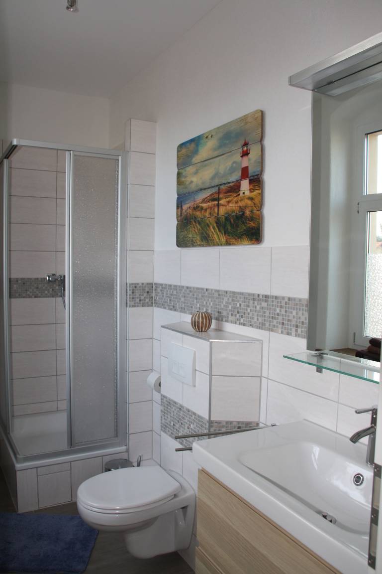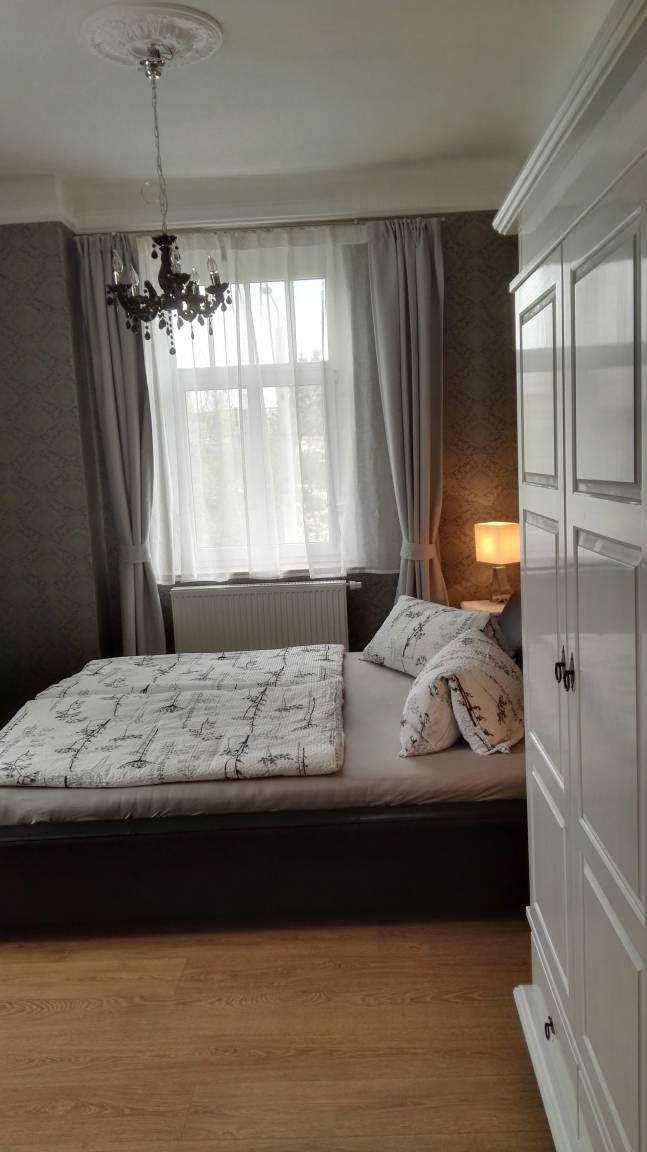Die Ferienwohnung befindet im ersten Obergeschoss eines sanierten Gründerzeithauses von 1899. Sie besteht aus zwei Schlafzimmern, zwei Bädern und einem Wohnzimmer mit großem Esstisch, Couch, Sessel und SAT-TV. Auf dem abgeschlossenen Grundstück können Sie Ihr Auto sicher abstellen. Zur Ferienwohnung gehört ein kleiner Sitzbereich im Hof/Garten.