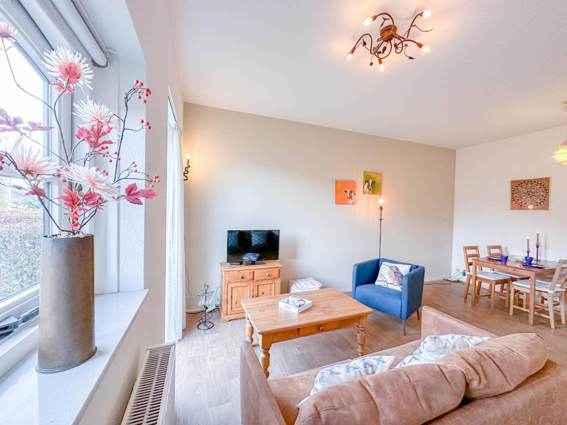 Layout : Parterre: offene Küche mit Wasserkocher, Kochherd(4 Kochplatten), Kaffeemaschine(Filter), Mikrowelle, Geschirrspüler, Kühlschrank(+ Gefrierfach) , Wohn/Esszimmer mit TV, Esstisch, Sitzecke , Schlafzimmer mit 2x Einzelbett , Badezimmer mit Dusche, Waschbecken, Toilette