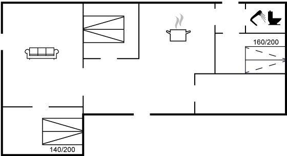 SchlafverhältnisseDie Schlafplätze verteilen sich auf 3 Schlafräume. 4 Schlafplätze in Doppelbetten. 2 Schlafplätze in einem Etagenbett.