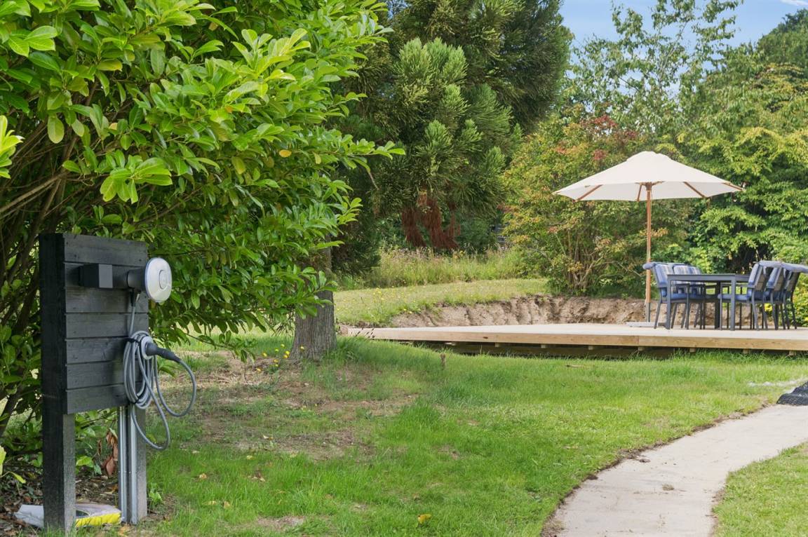 DraußenDie Ferienunterkunft liegt auf einem 1200 m² großen Gartengrundstück. Die Entfernung zum Meer beträgt 600 m. Die nächste Einkaufsmöglichkeit liegt 2100 m entfernt. Es steht ein offenes Terrassenareal zur Verfügung. Außerdem gibt es überdachte Terrasse.Lagerfeuerstelle. Windschutzhütte. Es steht ein Grill zur Verfügung. Es ist ein Ladestecker für Elektroautos installiert. Ladestecker Typ 2. Mit einer Ladeleistung von 11 kW. Parkplatz auf dem Grundstück.