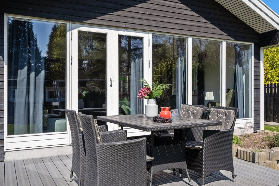 Dieses schöne Ferienhaus liegt auf einem teilweise abgeschirmten Grundstück am Ende einer Sackgasse. Übrigens: 2 der insgesamt 8 Schlafplätze befinden sich auf Schlafcouch im Wohnzimmer.