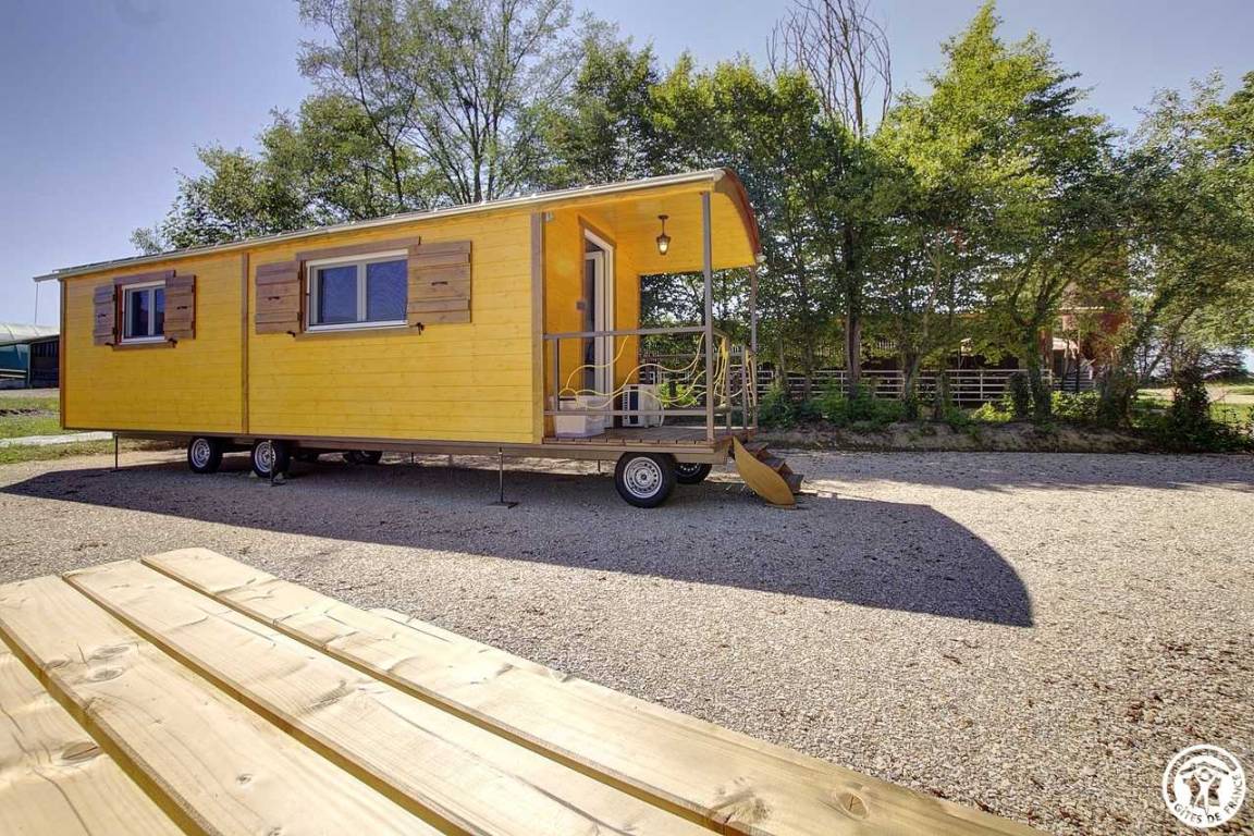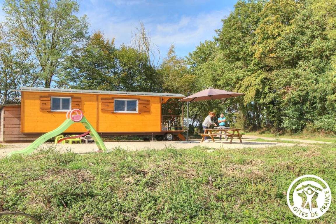 „Nous avons passé un excellent séjour avec les enfants dans ce cadre idyllique: Calme, verdure, douceur printanière, faune locale et animaux de la ferme. La roulotte apporte tout le nécessaire et la charme d’un logement moins commun aux enfants. Nous avons bénéficié de la terrasse (toute équipée) avec les premières chaleurs, et de splendides couchers de soleil. Les propriétaires sont accueillants et disponibles, merci à eux. La région apporte de belles promenades et visites en famille. Nous envisageons déjà le prochain séjour …“