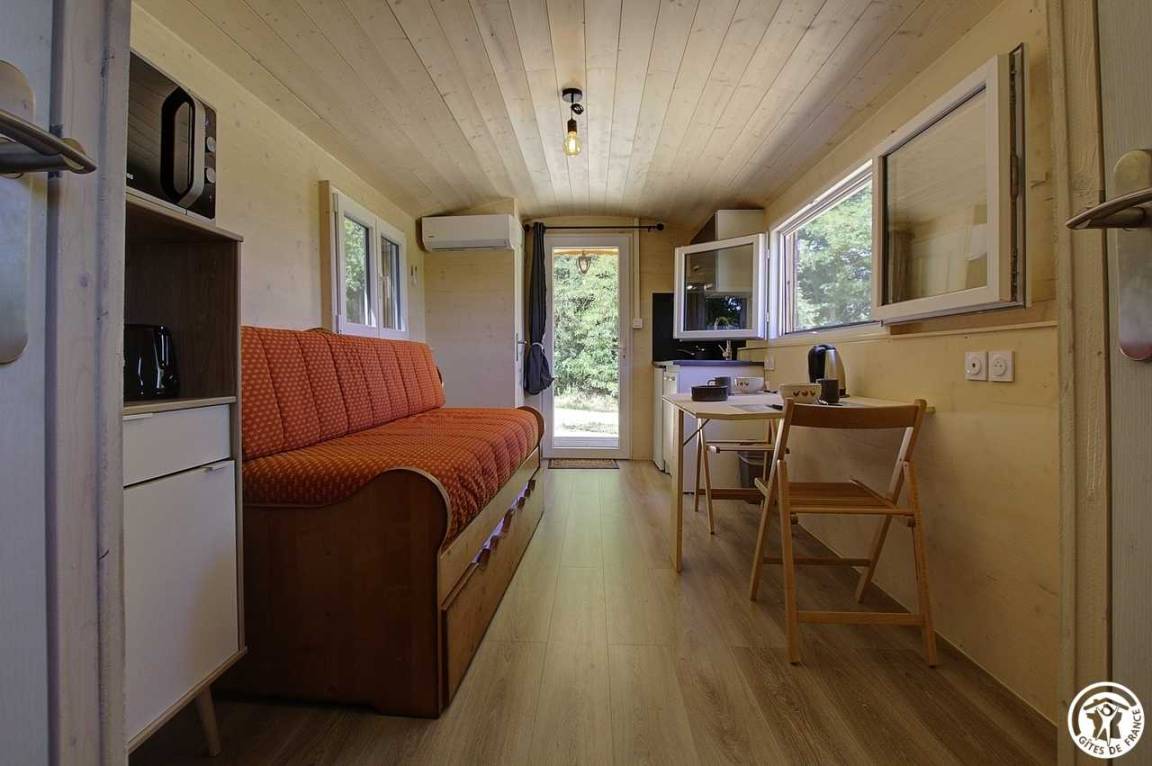 „Nous avons adoré notre séjour d'1 semaine dans ce gîte. Nous cherchions un logement atypique tout en étant confortable; ce qui correspond totalement à cette roulotte. Fraîchement rénovée avec modernité et goût, l'intérieur est impeccable. Rares sont les logements aussi propres. Pas grande (pour un couple c'est parfait!) mais très fonctionnelle et très bien équipée. Mention spéciale aux moustiquaires à toutes les fenêtres et à la climatisation ! Elle est située au calme. Les propriétaires sont adorables et très disponibles. Nous recommandons totalement ce gîte !“