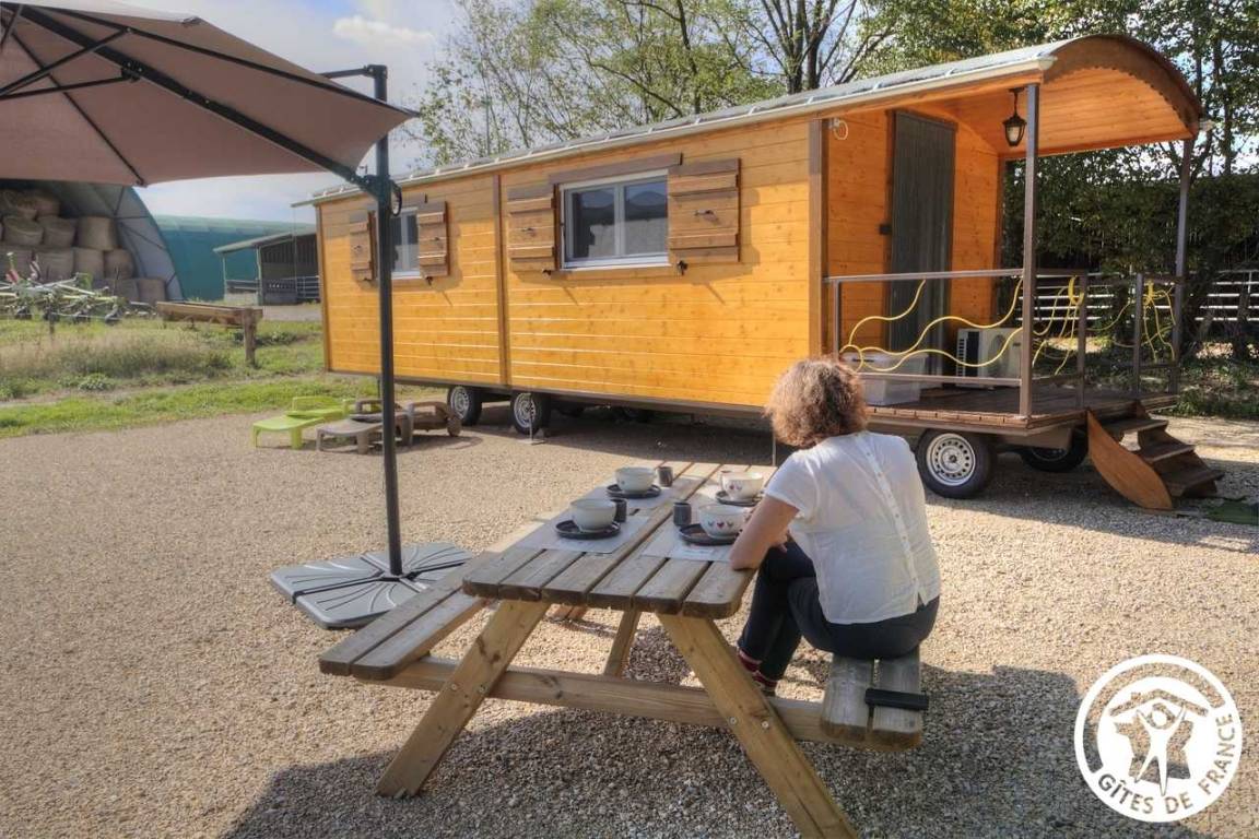 „Sur la route des vacances, nous avons fait une halte d'une nuit à la ferme d'Anne Laure et Eric. Nous avons été très bien accueillis, la roulotte située en bordure de champs est très confortable. Nous avons passé un très bon moment.“