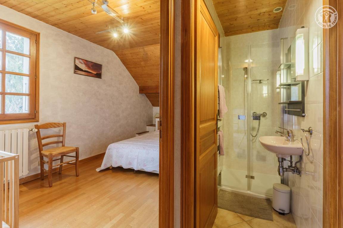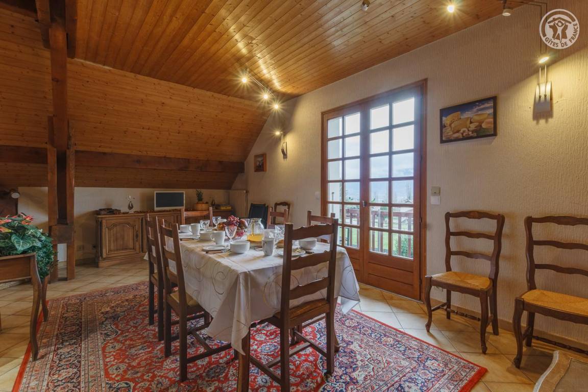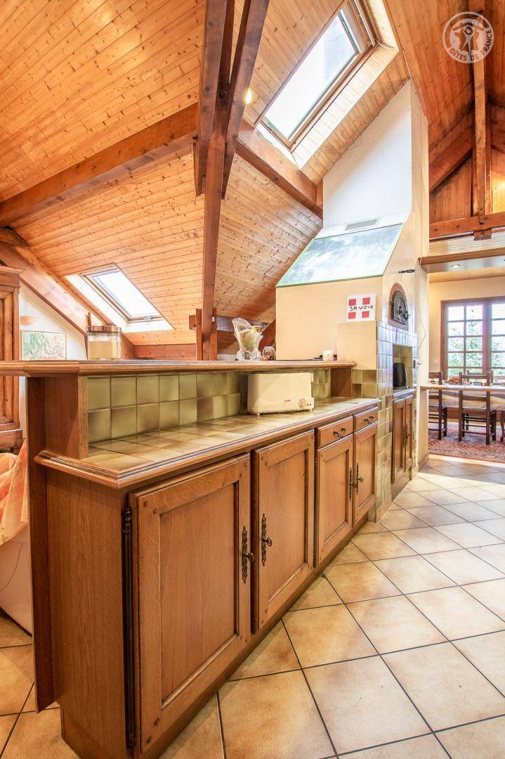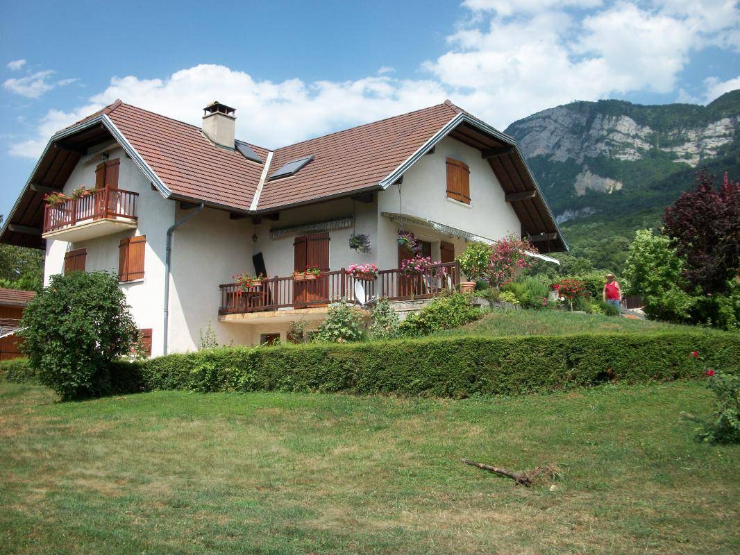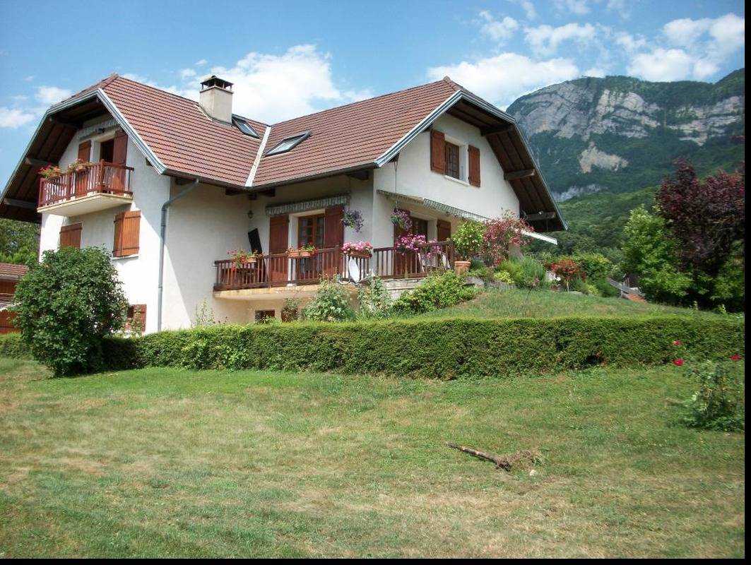 Ferienwohnung im Haus des Besitzers. 1. Stock: Wohnzimmer mit Küchenbereich, Loungebereich mit Kamin, Wifi-Anschluss, Klimaanlage, 3 Schlafzimmer (1 Doppelbett 160 x 200 cm / 2 Einzelbetten 90 x 200 cm / 1 Doppelbett 140 x 190 cm), 2 Badezimmer (Dusche), separates WC. Garage. Balkon, gepflasterter Hof, Grundstück (Sommerküche und Grill). Ski Revard. Thermalbäder von Aix-les-Bains. Mietpreise für Bettwäsche und Haushaltswäsche: siehe Vermieter.