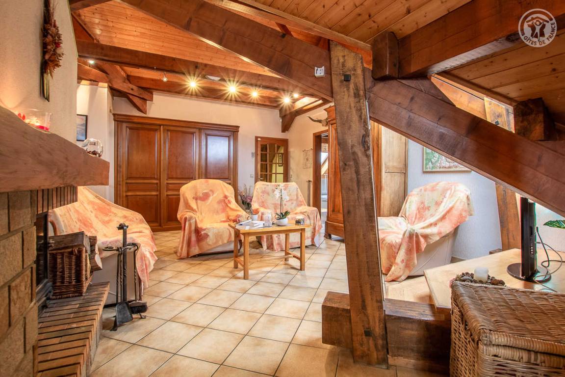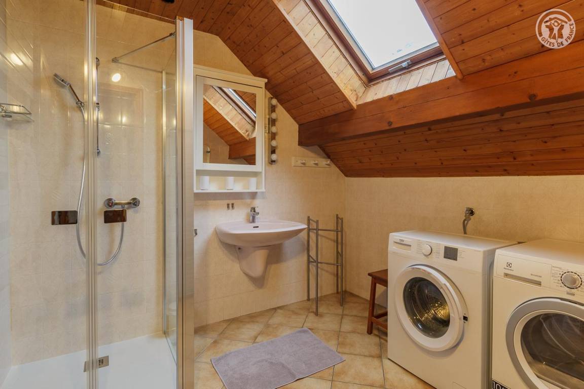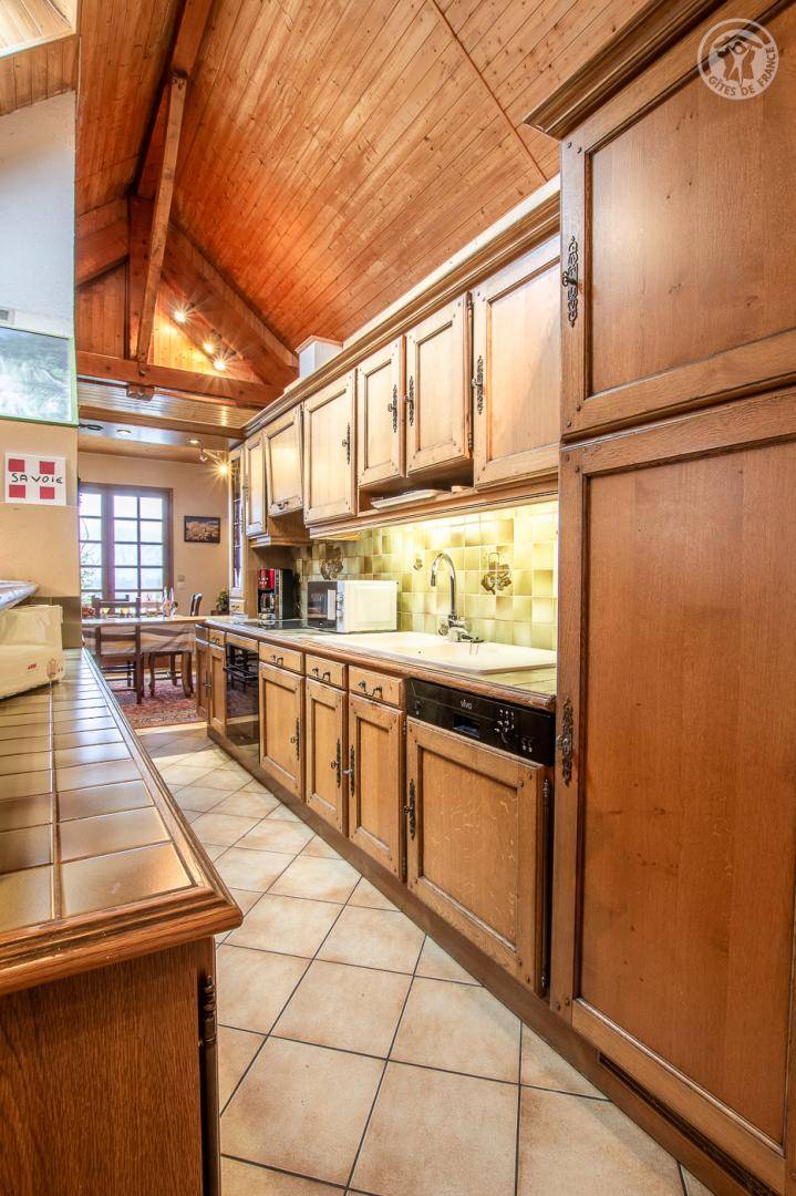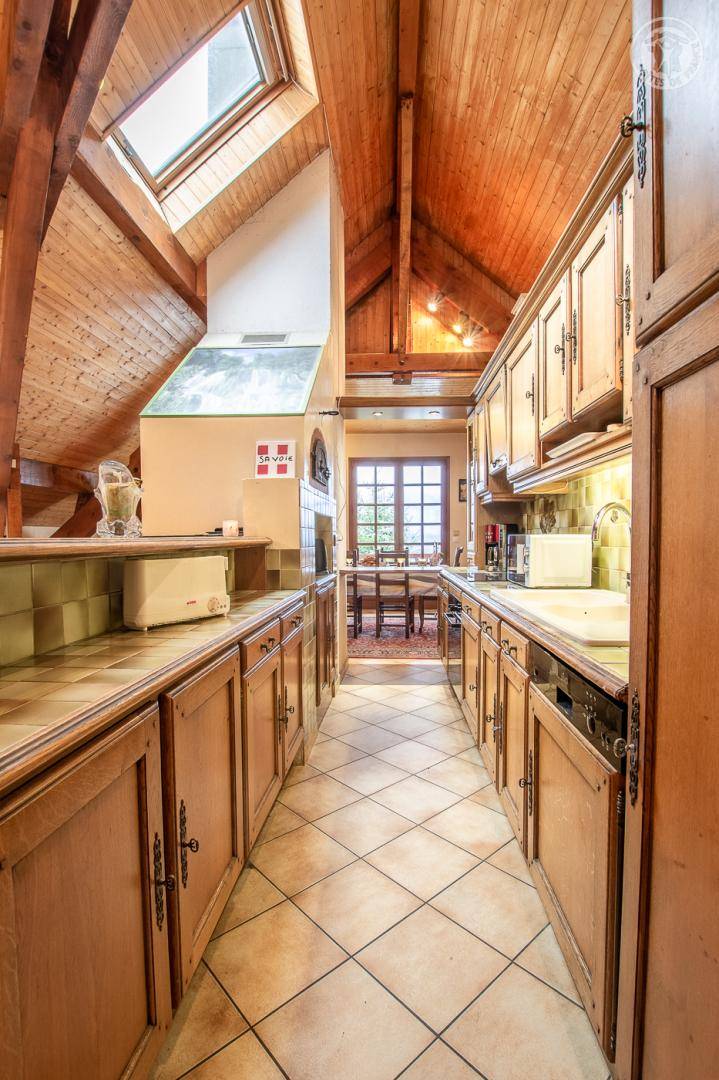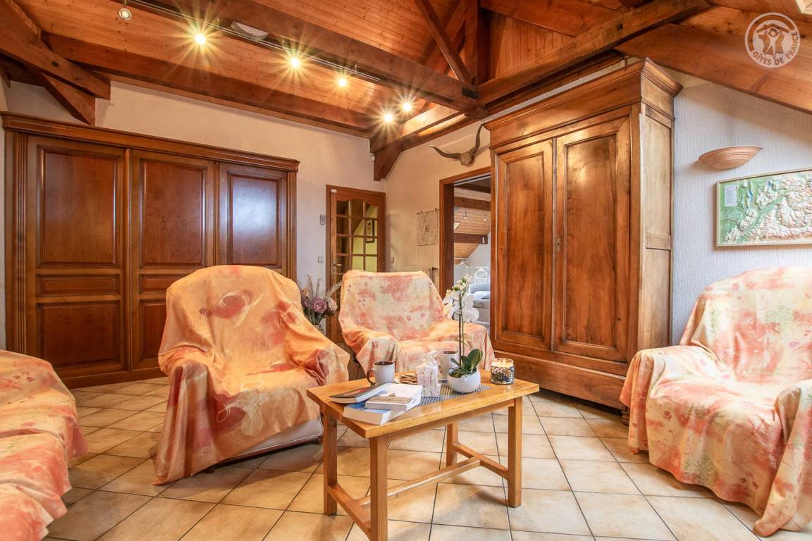 Ferienwohnung im Haus des Besitzers. 1. Stock: Wohnzimmer mit Küchenbereich, Loungebereich mit Kamin, Wifi-Anschluss, Klimaanlage, 3 Schlafzimmer (1 Doppelbett 160 x 200 cm / 2 Einzelbetten 90 x 200 cm / 1 Doppelbett 140 x 190 cm), 2 Badezimmer (Dusche), separates WC. Garage. Balkon, gepflasterter Hof, Grundstück (Sommerküche und Grill). Ski Revard. Thermalbäder von Aix-les-Bains. Mietpreise für Bettwäsche und Haushaltswäsche: siehe Vermieter.