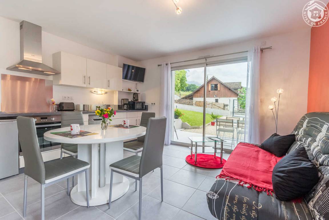Ferienhaus in einem Haus mit 2 Wohnungen. Erdgeschoss (unabhängiger Zugang und auf einer Ebene): Wohnzimmer-Küchen-Loungebereich (1 Schlafsofa für 1 Person), WLAN-Verbindung, ein Schlafzimmer (1 Doppelbett 140 x 190 cm), Duschbad mit WC. Privater Waschtrockner. Geschützte Terrasse mit Garten. Alpinski + Langlauf + Schneeschuhwandern Le Revard 19 km, La Féclaz 22 km. Seestrand von Bourget 7 km. Therme Chevalley 3 km entfernt, Therme Marlioz 4,5 km entfernt.