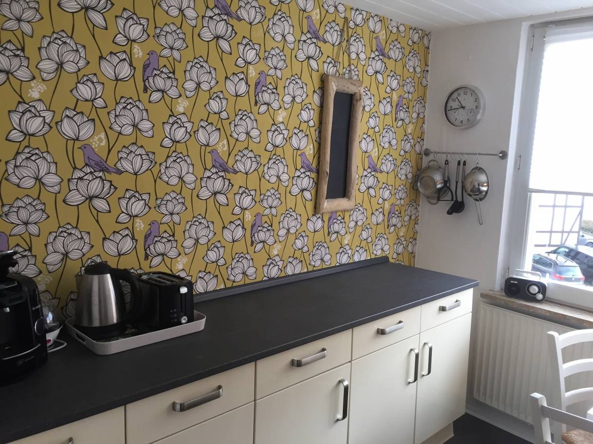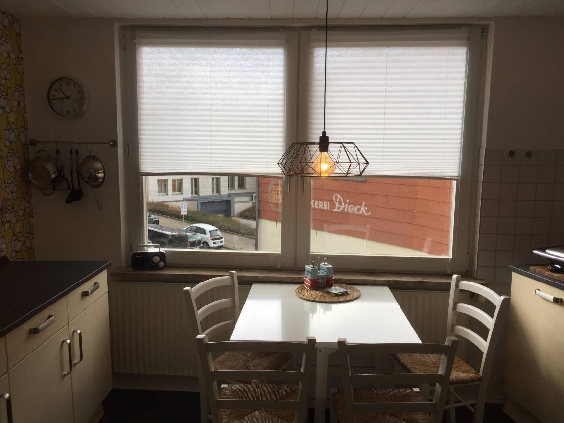 Im 1. Obergeschoss findet man die voll ausgestattete Küche mit Geschirrspüler, Kühl-Gefrierkombi, Mikrowelle, einem Esstisch etc.