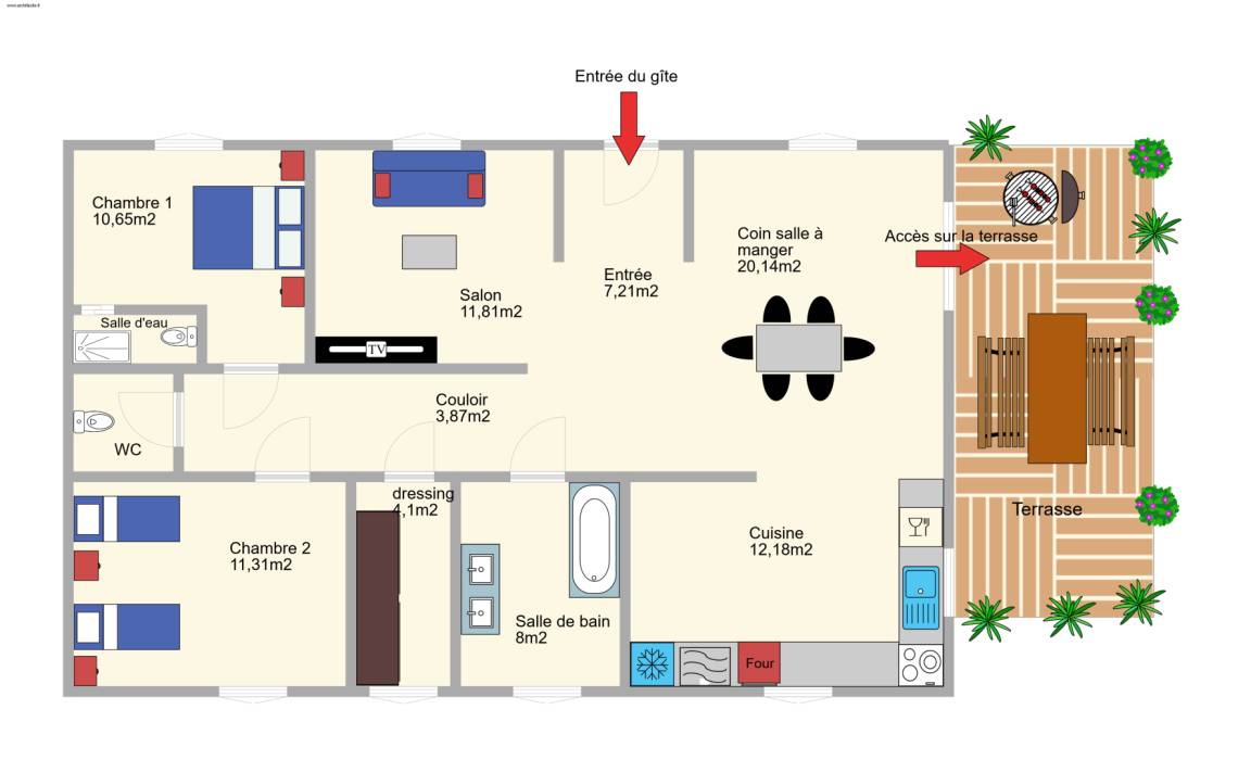 92 m² Gîte ∙ 2 Schlafzimmer ∙ 4 Gäste