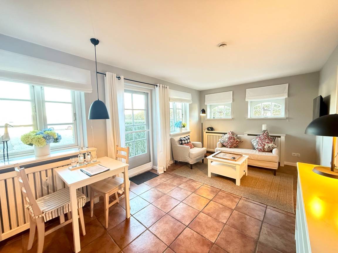 Zu dieser Wohnung gehört ein PKW Stellplatz am Haus. In wenigen Fußmetern erreichen Sie den Hauswirtschaftsraum mit Waschmaschinen und Trocknern, auch zu Ihrer Verfügung. Von hier aus haben Sie einen perfekten Ausgangspunkt für lange Spaziergänge am Strand und zur Wattwanderung nach Amrum, Fahrradtouren zu den Nachbarorten und in die Marsch und zu dem wohl schönsten Sonnenuntergang der Nordseeregion.Der Deichhof ist in der Gemeinde Dunsum angesiedelt, die im Westen der Insel Föhr liegt. Er liegt an der verkehrsberuhigte Ortsdurchfahrtstraße und reicht an weitläufige Wiesenflächen, die direkt an den 500 m entfernt liegenden Deich der Nordsee reichen, mitten in die Natur eingebettet. Der Deichhof kann somit als Oase der Ruhe und Natürlichkeit betrachtet werden. Die Wohnung verfügt seit Juni 2024 über WLAN und wurde im Herbst 2024 umfassend renoviert.