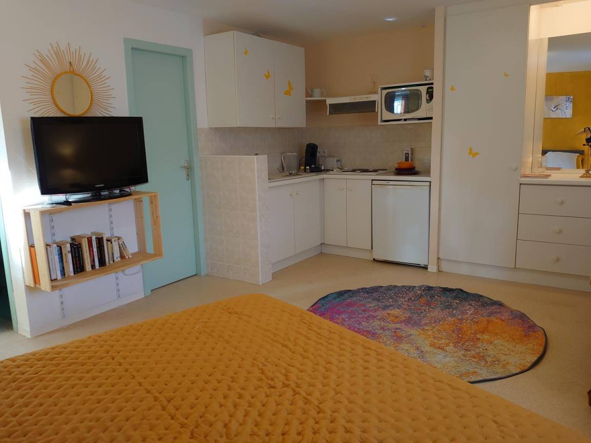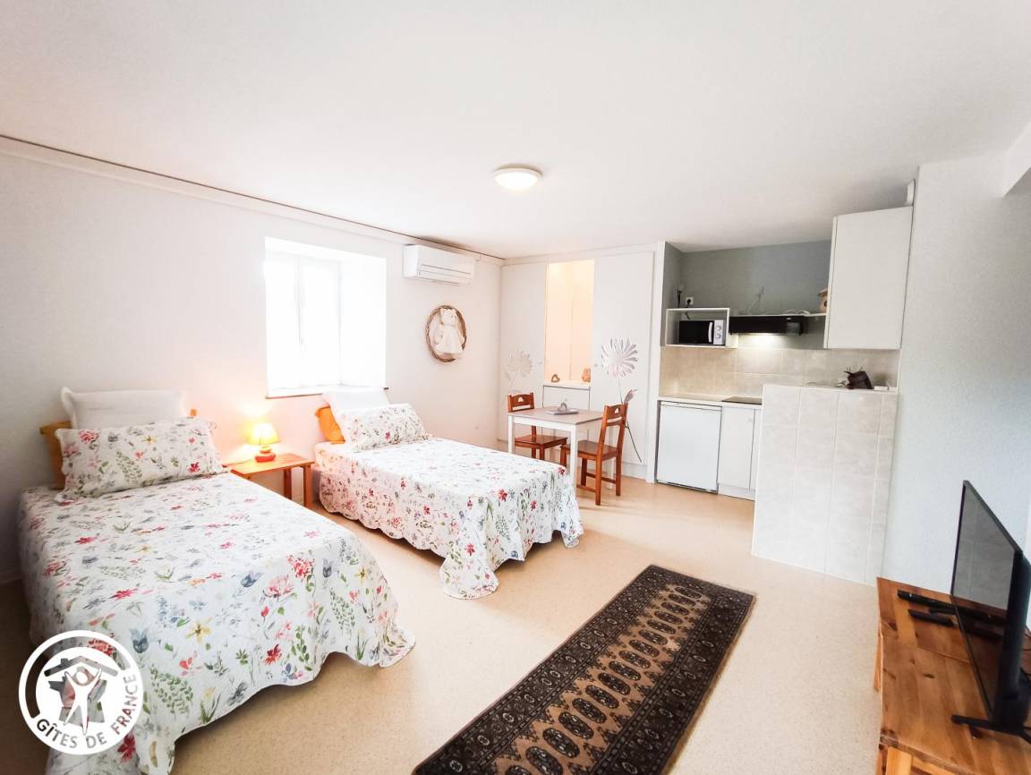 „Chambres très spacieuses et très bien équipées (avec coin cuisine) pièce à vivre très agréable d'où l'on peut voir des petits écureuils. Seul bémol, s'il faut en trouver un, l'évier de la cuisine est bien petit et le frigo un peu loin.... Nous avons bien apprécié le four à pizza! Gîte très bien équipé en matériel de cuisine! un lieu idéal de villégiature!“