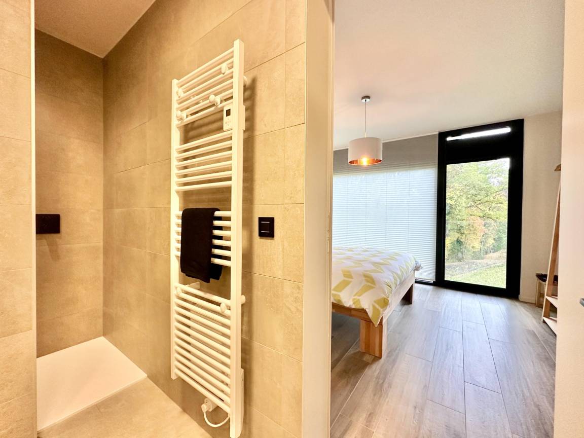 Hausbeschreibung : Genießen Sie puren Luxus in dieser geräumigen Wohnung mit privater Garage und Fahrradabstellraum, geräumiger Eingangshalle, voll ausgestatteter offener Küche, stilvollem Wohn-/Esszimmer mit geräumiger Sitzecke, ausgestattet mit Smart-TV. Die Schlafzimmer sind sehr komfortabel eingerichtet und verfügen jeweils über ein eigenes Bad mit begehbarer Dusche und eines der Bäder hat auch eine Badewanne. Entspannen Sie sich auf der großen Terrasse (33 m²) und genießen Sie die schöne Aussicht auf Durbuy