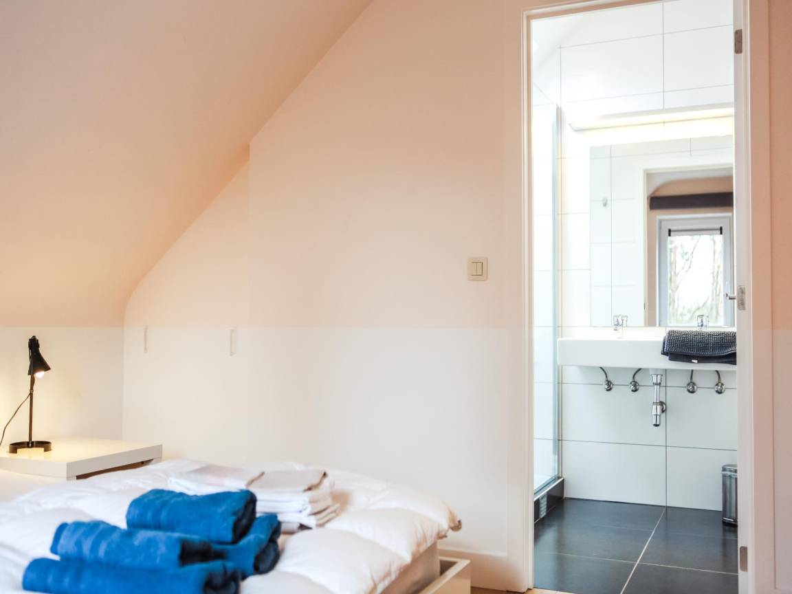 In der 1. Etage: 4x Schlafzimmer mit Doppelbett(Doppelbettdecke, 180 x 200 cm) , 2x Badezimmer mit Dusche(ebenerdige Dusche), 2x Waschbecken , Toilette mit Toilette