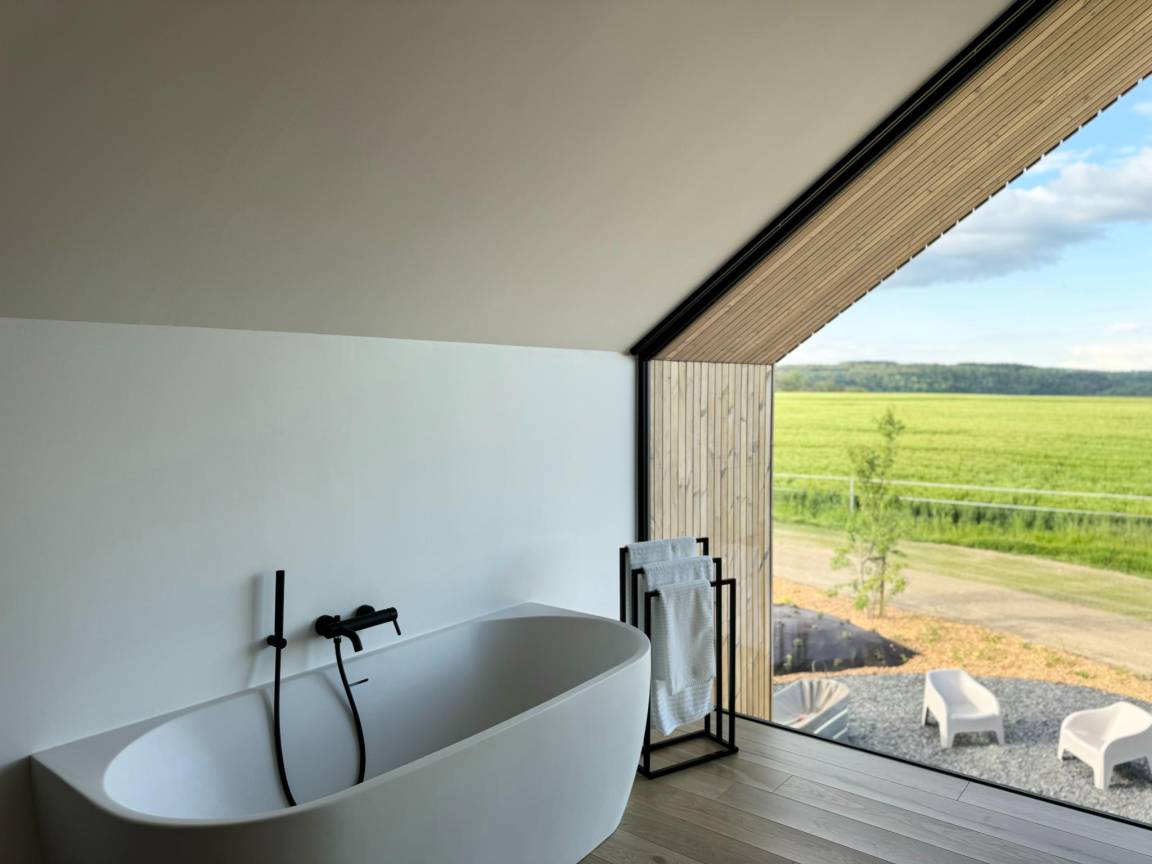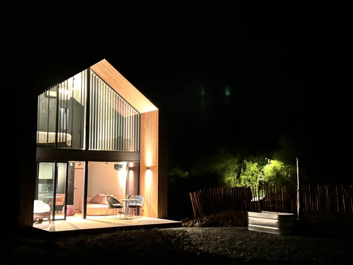 Hausbeschreibung : Gönnen Sie Ihrem Partner (und natürlich sich selbst) eine unvergessliche Zeit in dieser romantischen Lodge. Genießen Sie eine voll ausgestattete Küchenzeile, ein Wohnzimmer mit TV und ein Schlafzimmer mit XL-Doppelbett und einer Duo-Badewanne mit Blick auf das Tal. Im privaten Whirlwanne können Sie die Seele baumeln lassen, aber auch ein erfrischendes Bad im Gemeinschaftspool ist eine Option. Lassen Sie den Tag stilvoll an der Feuerstelle mit einem Getränk Ihrer Wahl ausklingen