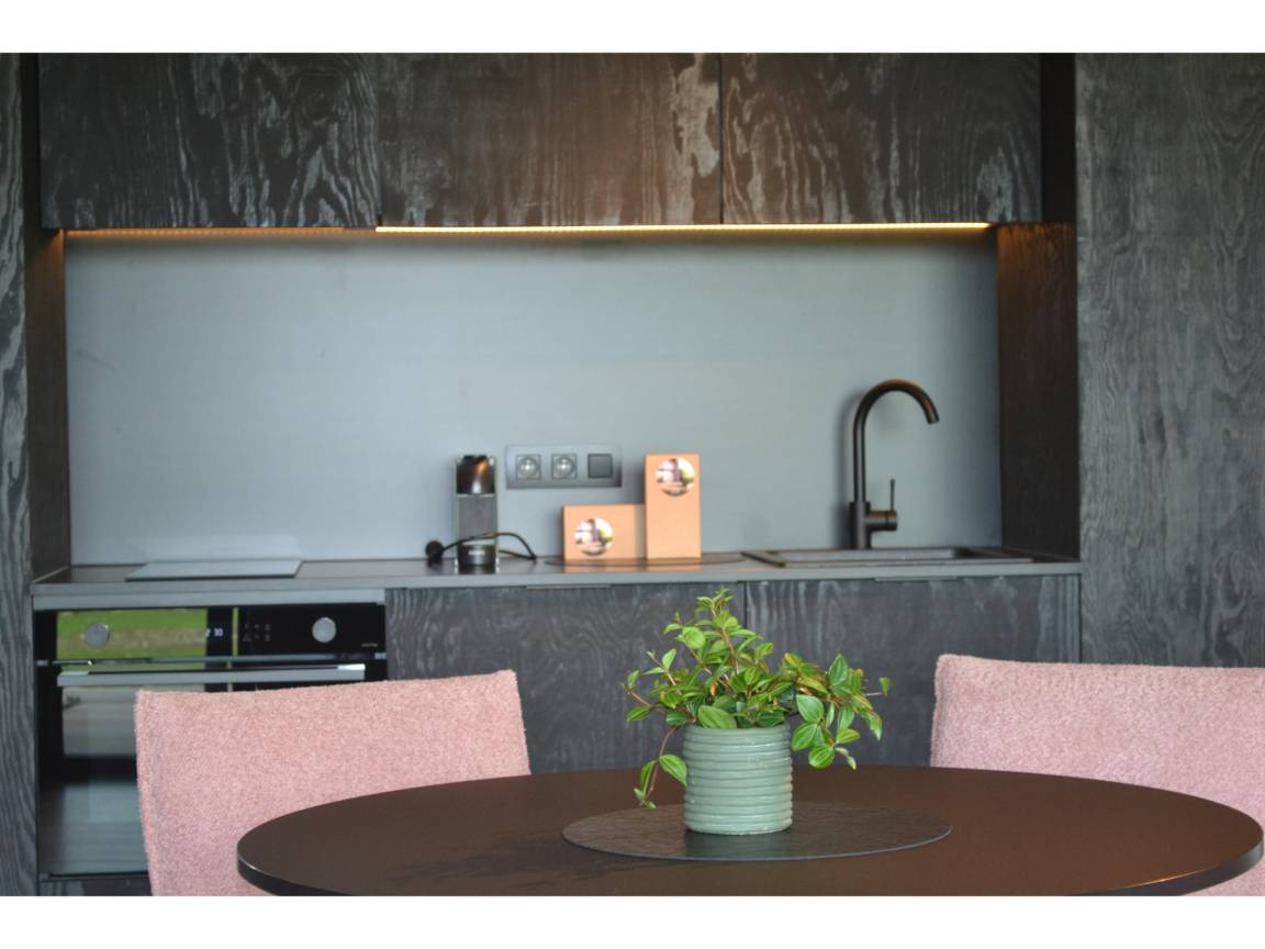 Layout : Parterre: offene Küche mit Kochplatte(Ceranfeld), Toaster, Kaffeemaschine, Kombi-Mikrowelle, Kühl-/Gefrierkombination , Wohn/Esszimmer mit TV(Flatscreen, digital), Esstisch(2 Personen), Sitzecke, Stereoanlage , Toilette mit Waschbecken, Toilette , Flur