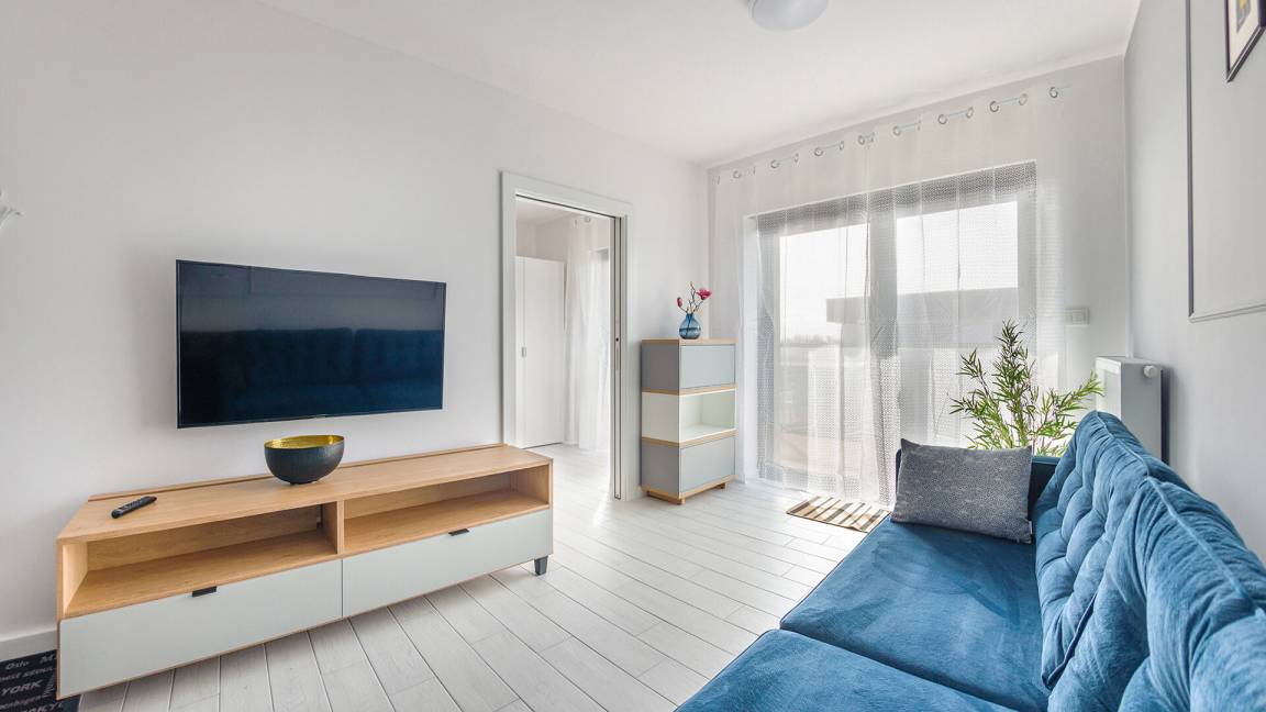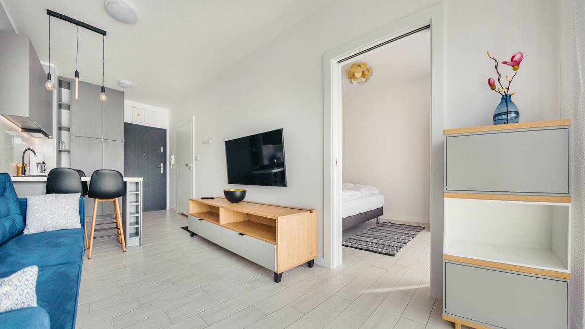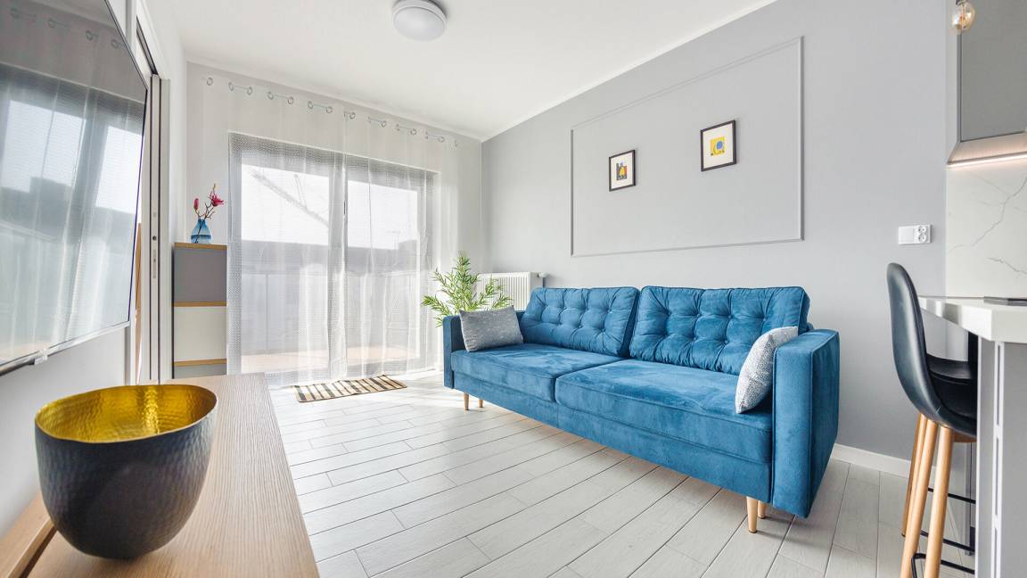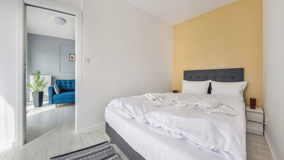 • Haustiere sind in der ausgewählten Wohnung erlaubt. Die Kosten für den Aufenthalt mit einem Haustier betragen 40 PLN pro Tag.