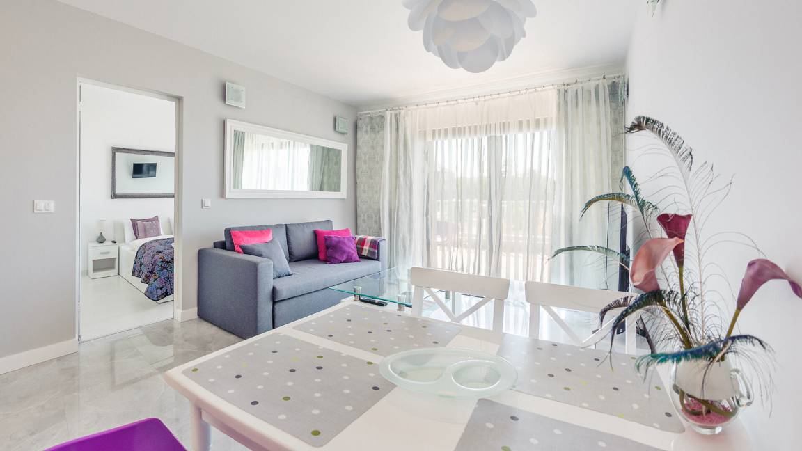 Nur 100 Meter trennen die Apartments vom breiten, sandigen Strand – ideal für Sonnenanbeter ebenso wie für ausgedehnte Spaziergänge entlang der Küste. Das Rauschen der Wellen und die frische Meeresbrise schaffen eine unvergleichliche Atmosphäre, die zur vollkommenen Entspannung einlädt.