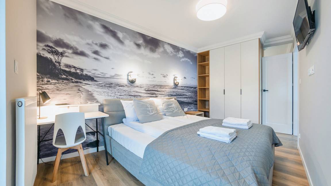 Nur 100 Meter trennen die Apartments vom breiten, sandigen Strand – ideal für Sonnenanbeter ebenso wie für ausgedehnte Spaziergänge entlang der Küste. Das Rauschen der Wellen und die frische Meeresbrise schaffen eine unvergleichliche Atmosphäre, die zur vollkommenen Entspannung einlädt.
