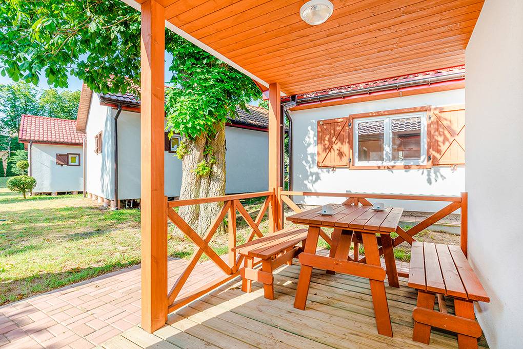 PL 37.7 Ferienhaus 2-4 Pers.: Helles 3-Zimmerhaus mit 38 qm Wohnfläche. Wohnküche mit Esstisch, Eckbank, Flachbild Kabel-TV, kleiner Pantry-Küche (2 E-Platten). 2 Doppelzimmer. Bad/WC. Kleine überdachte Terrasse mit Sitzmöbeln. Gemauerter Grill am Haus.