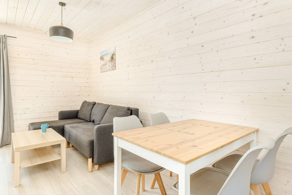 Nebenkosten: 60 Zl./Pers. (nur in Saison B und C. Maximal 240 Zl.). Strom nach Verbrauch (3,50 Zl./kWh). Kurtaxe. Bettwäsche vorhanden. Handtücher mitzubringen. Zusätzliche Leistungen: Kostenloser Internetzugang über W-Lan. 1 Pkw-Stellplatz 25 Zl./Tag (nur in Saison B und C). Tretboot 50 Zl./Std. Kajak, Ruderboot 40 Zl./Std. 10% Ermäßigung auf Kurse der zugehörigen Windsurfschule. Kaution 50€. Kinder Babybett zusätzlich zur maximalen Personenzahl 50 Zl./Aufenthalt (Bestellung). Hochstuhl ohne Berechnung (Bestellung). Haustier 30 Zl./Tag, max. 2 Hunde (Anmeldung). Nebenkosten sind vor Ort beim Vermieter zu zahlen.Räume & Aufteilung