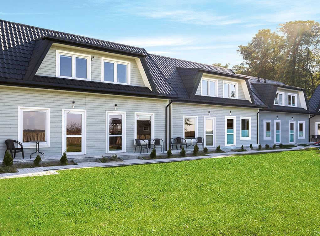 Haus: Kleine Ferienhausanlage mit sieben Doppelhäusern auf einem 2000 qm großen Rasengrundstück, 2017 neu erbaut. In der Anlage: Kinderspielplatz mit großem Sandkasten, Schaukeln, Klettergerüst, Rutsche. Direkt vor der Anlage: Wassersportschule mit Materialverleih (Kite-, Surfausrüstung, Kajak, Ruderboot, Tretboot), Frosch-Gäste erhalten hier 10% Rabatt.