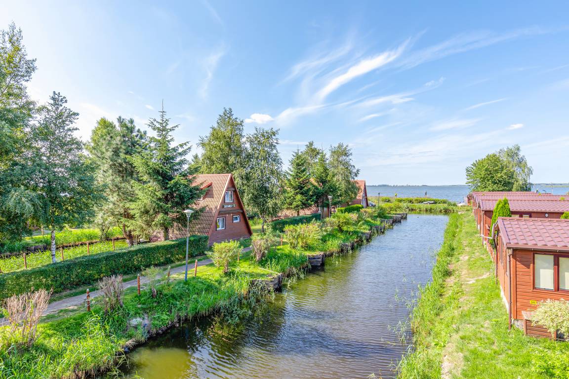 Haus: Schöne Ferienhausanlage direkt am Reskosee, ideal für Angler und Liebhaber des Wassersports. In der Anlage: Rezeption, Restaurant (Frühstück, Halbpension, Vollpension buchbar vor Ort von Ende Juni bis vorletzten Samstag im August). Verleih von Ruder-, Tret-, Motorbooten, Kajaks (Gebühr). Organisierte Angeltouren (ab Kolberg, Gebühr. Information in der Rezeption.). Kleine Freilichtbühne. Kinderspielplatz mit Rutsche, Sandkasten, Schaukel.