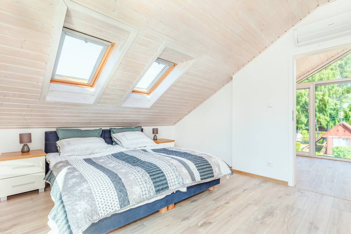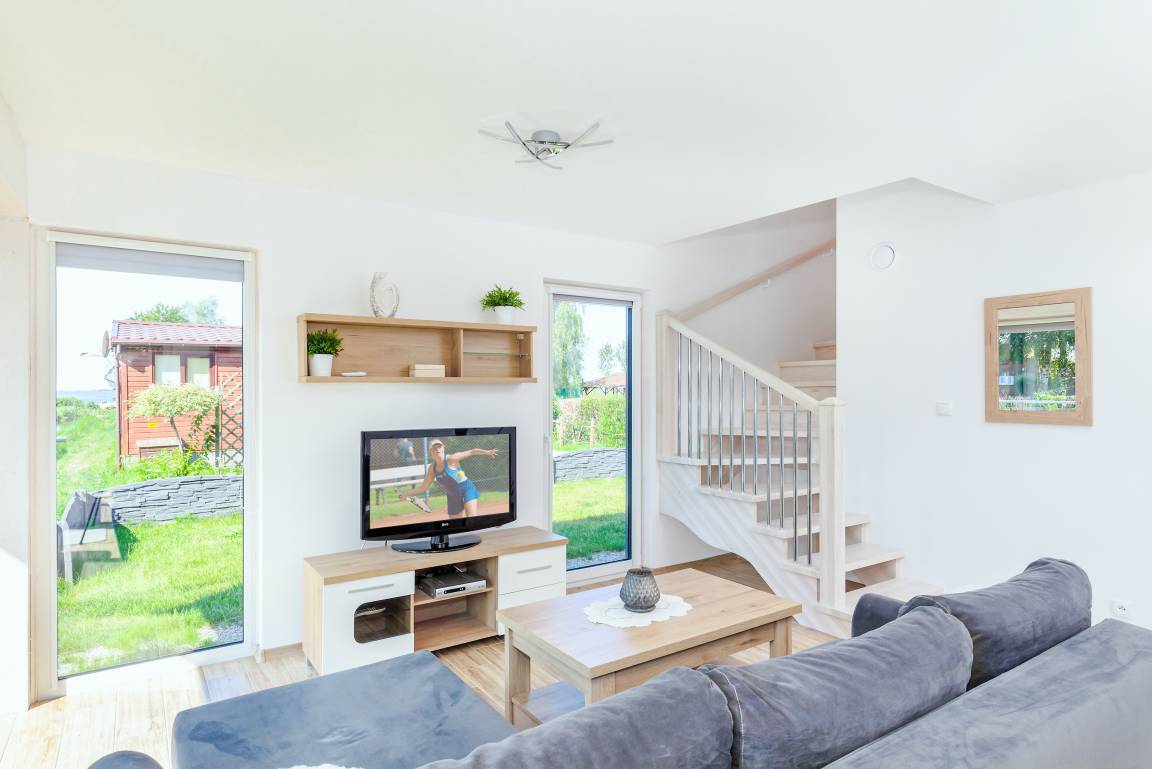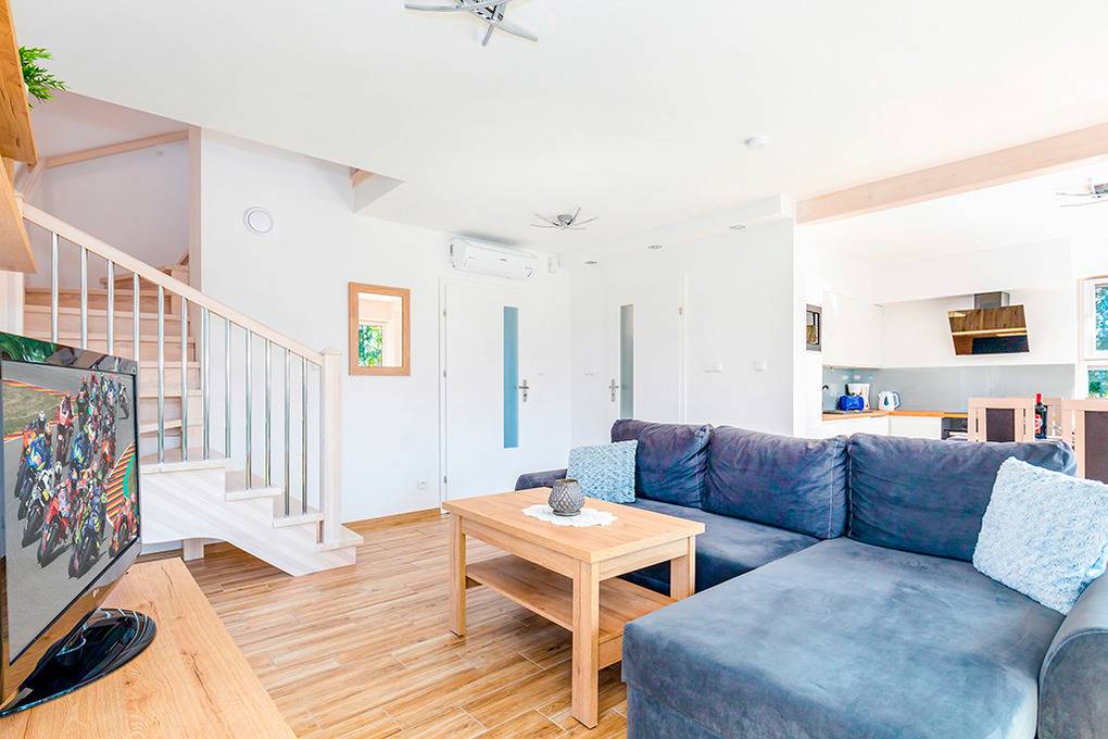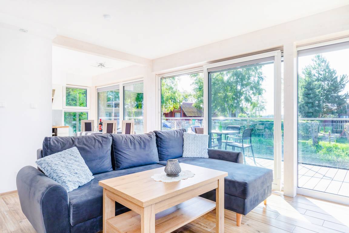 Nebenkosten: 60 Zl./Pers. Gas nach Verbrauch (7 Zl./m3). Strom nach Verbrauch (3 Zl./kWh). Kurtaxe. Bettwäsche, Handtücher vorhanden. Zusätzliche Leistungen: 1 Parkplatz 35 Zl./Tag/Auto, 2 Parkplatz 35 Zl./Tag/Auto (auf Anfrage). Bootsverleih: Kajak 40 Zl./Std. Tretboot 50 Zl./Std. Kostenloser Internetzugang über W-Lan. Haustier 40 Zl./Tag (Anmeldung) (max. 2 Hunde).Räume & Aufteilung