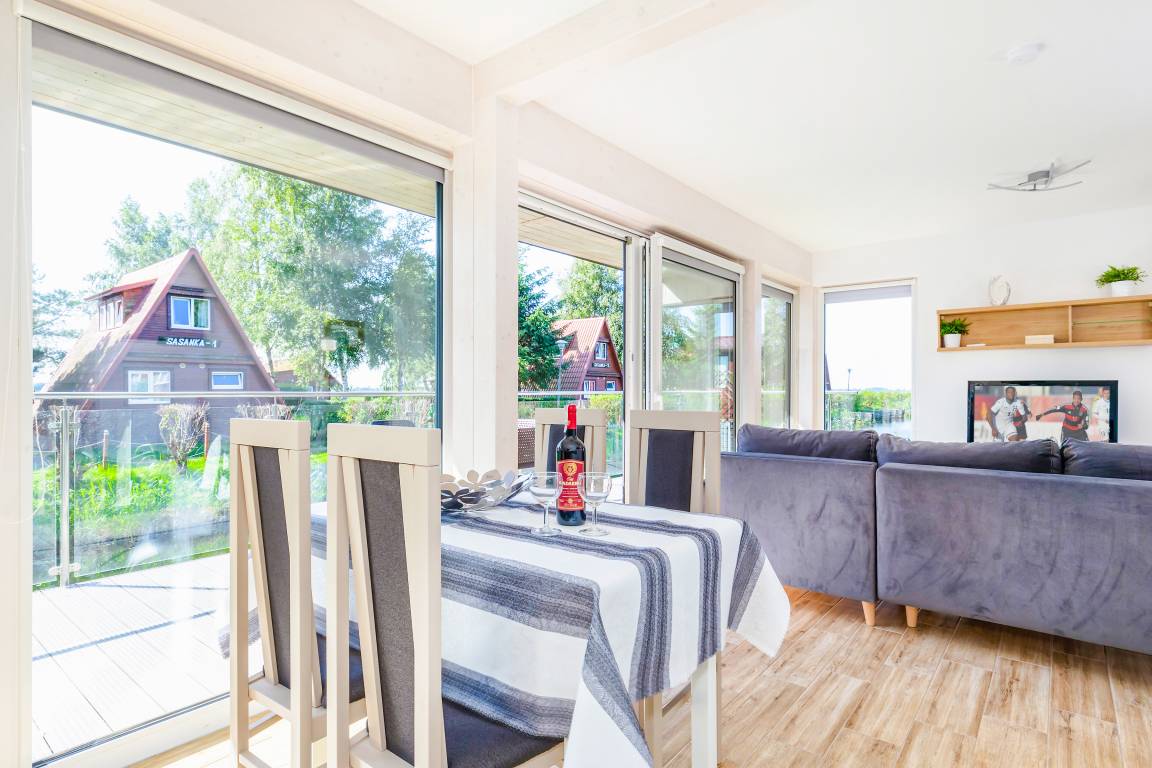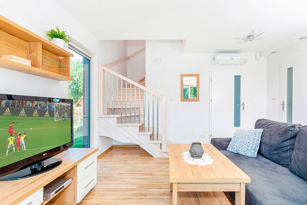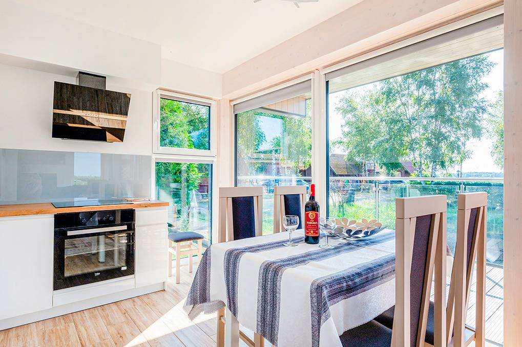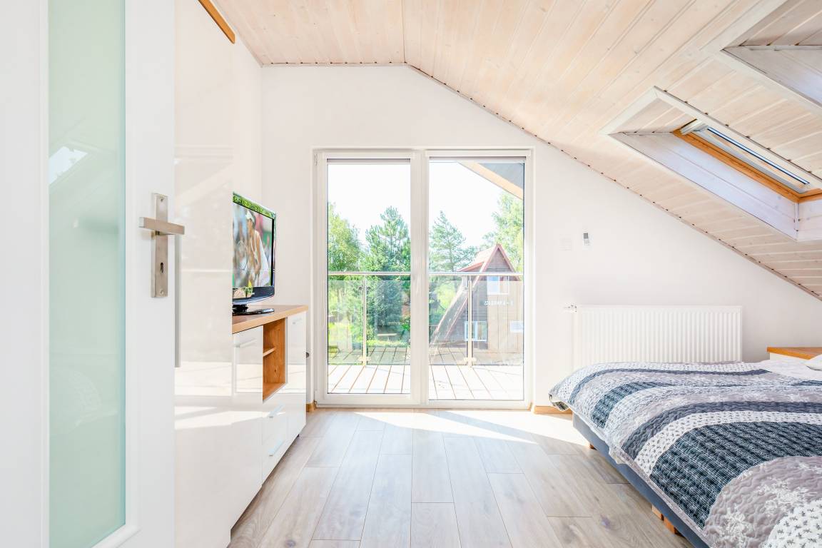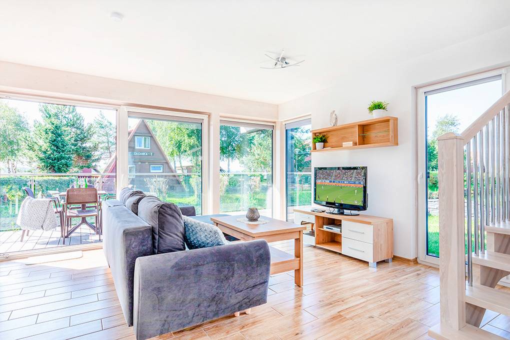 Nebenkosten: 60 Zl./Pers. Gas nach Verbrauch (7 Zl./m3). Strom nach Verbrauch (3 Zl./kWh). Kurtaxe. Bettwäsche, Handtücher vorhanden. Zusätzliche Leistungen: 1 Parkplatz 35 Zl./Tag/Auto, 2 Parkplatz 35 Zl./Tag/Auto (auf Anfrage). Bootsverleih: Kajak 40 Zl./Std. Tretboot 50 Zl./Std. Kostenloser Internetzugang über W-Lan. Haustier 40 Zl./Tag (Anmeldung) (max. 2 Hunde).Räume & Aufteilung