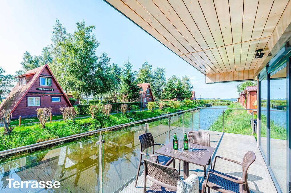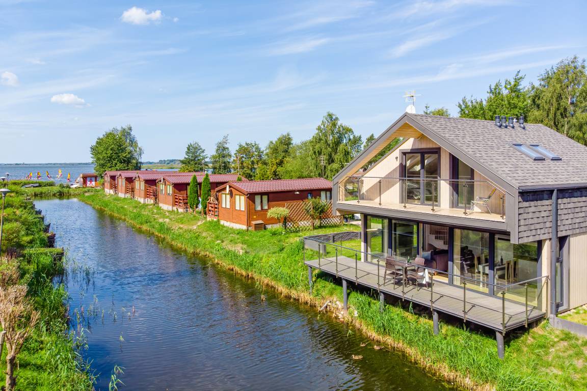 Ort: Dzwirzyno (Kolberger Deep). Traumhafte Lage direkt am Reskosee. Segel-, Kite- und Surfschule mit Verleih von Surfbrettern (Juli-August, Gebühr) 50 m. Angelmöglichkeiten (Gebühr) im fischreichen Reskosee 50 m. Ostseestrand 980 m. Lebensmittelladen 350 m. Geschäfte, Restaurants 800 m. Öffentliches Hotelhallenbad mit mehreren Saunen, Whirlpool, Wasserrutschen, Salzgrotte 200 m. Sportzentrum (Fitnessstudio, Volleyball, Basketball, 2 Tennisplätze, Tennishalle, Minigolf, Badminton, Skatepark, Tischtennis, großer Kinderspielplatz) 850 m. Ostseeküsten-Radweg nach Kolberg 900 m. Kolberg mit Leuchtturm, Seebrücke, historischer Altstadt 12 km.