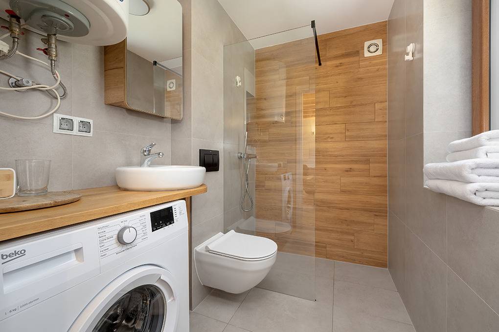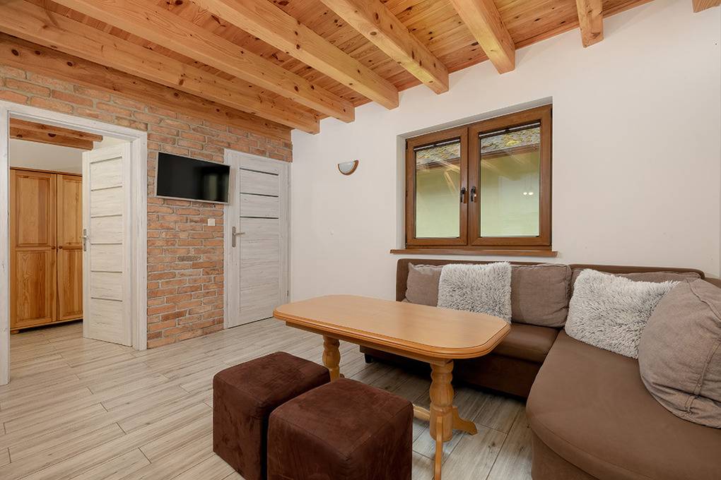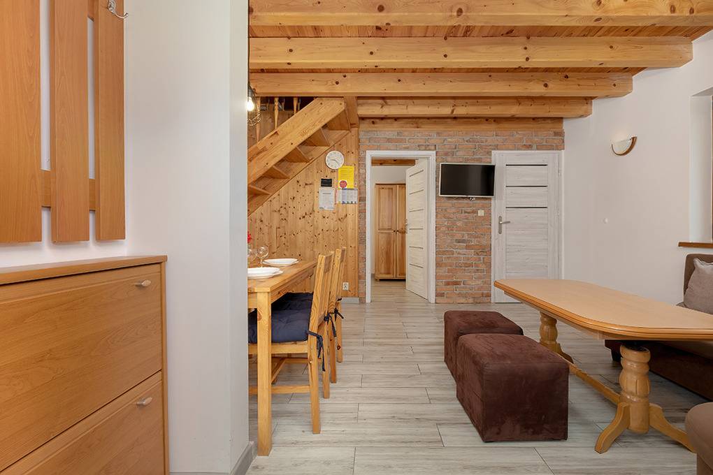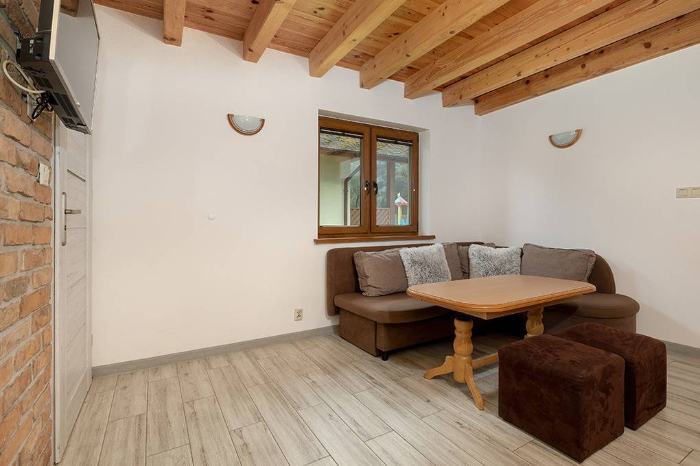 Nebenkosten: Strom nach Verbrauch (1 Zl./kWh). Kurtaxe. Bettwäsche vorhanden. Handtücher mitzubringen. Zusätzliche Leistungen: Kostenloser Internetzugang über W-Lan. 1 Pkw-Stellplatz im Preis inklusive. Kinder Babybett/Hochstuhl zusätzlich zur maximalen Personenzahl, jeweils ohne Berechnung (Bestellung). Haustier 20 Zl./Tag (Anmeldung) (max. 2 Hunde).Räume & Aufteilung
