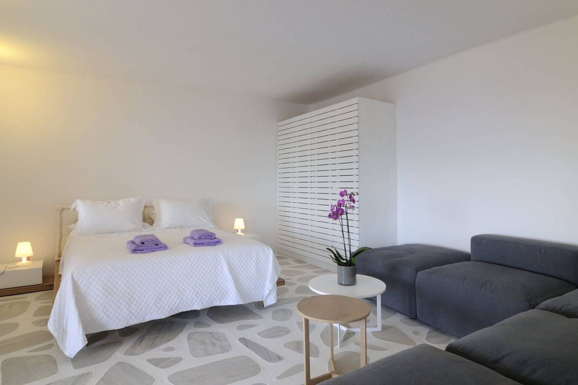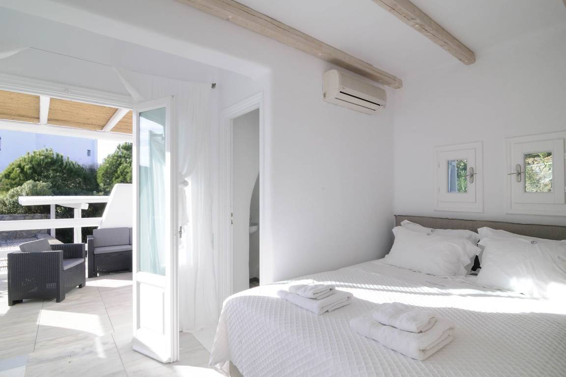 Die Villa verfügt über eine Gesamtfläche von unbekannten Quadratmetern, verteilt auf mehrere Ebenen, und bietet Platz für bis zu 8 Gäste in 4 Schlafzimmern und 4 Bädern. Jedes Schlafzimmer ist mit einem eigenen Bad ausgestattet. Die genauen Betttypen, Bettmaße und die Verteilung der Räume auf einzelne Geschosse werden in der Quelle nicht spezifiziert.