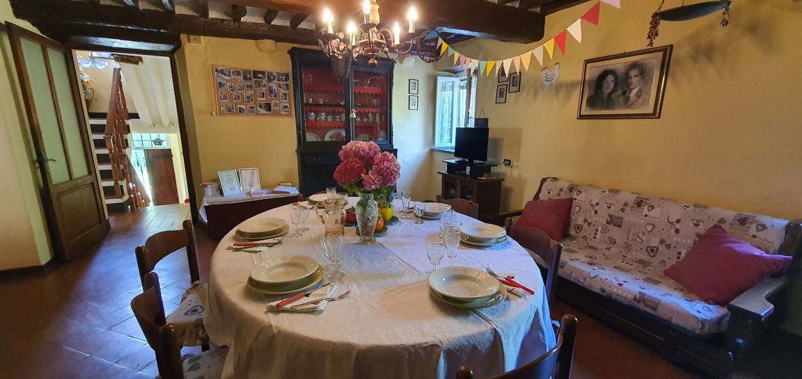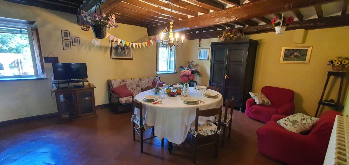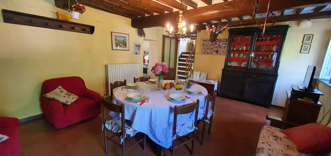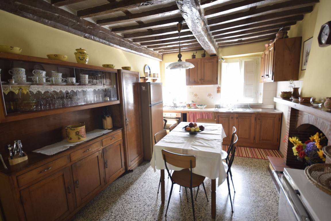 Küche: Esstisch (Personen: 6), Kühlschrank, Tiefkühler, Herd, Ofen, Kamin.