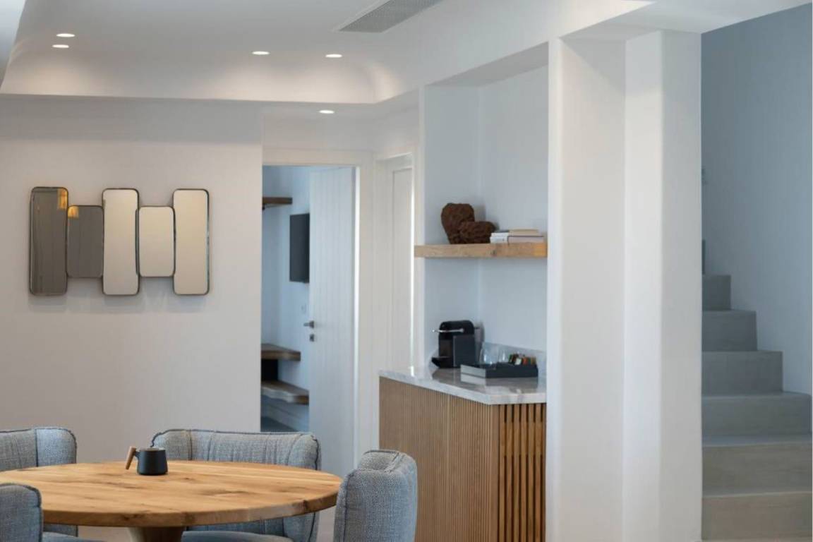 Die Villa verfügt über eine Gesamtfläche von etwa 200 Quadratmetern, verteilt auf mehrere Ebenen, und bietet Platz für bis zu 6 Gäste in 3 Schlafzimmern und 3 Bädern. Jedes Schlafzimmer ist mit einem eigenen Bad ausgestattet; mindestens eines der Bäder verfügt über eine Whirlpool-Badewanne. Die Innenräume sind elegant möbliert und öffnen sich zu den Außenbereichen, wodurch eine fließende Verbindung zwischen den Wohnbereichen und dem Außenbereich entsteht.