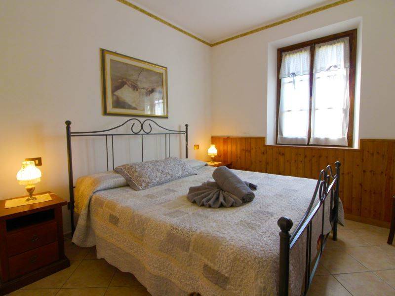Die Wohnung im Erdgeschoss besteht aus einem Wohn-Esszimmer mit Kochnische und Kamin, Schlafzimmer mit Doppelbett, Schlafzimmer mit zwei Einzelbetten und Bad mit Dusche.