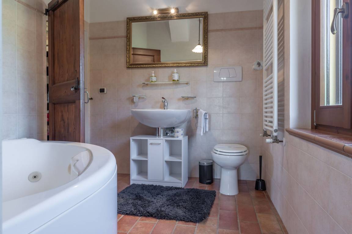 Badezimmer 1: Waschbecken, WC, Bidet, Badewanne, Fön, WiFi Internet.