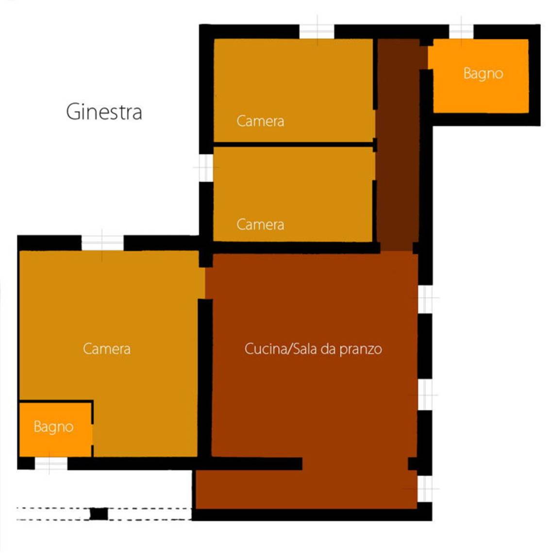 Ginestra (120 m²) ist eine drei-Zimmer Wohneinheit, die auf eins Stockwerk gebaut ist, mit zwei Badezimmern. Hier können bis zu sechs Personen unterkommen.