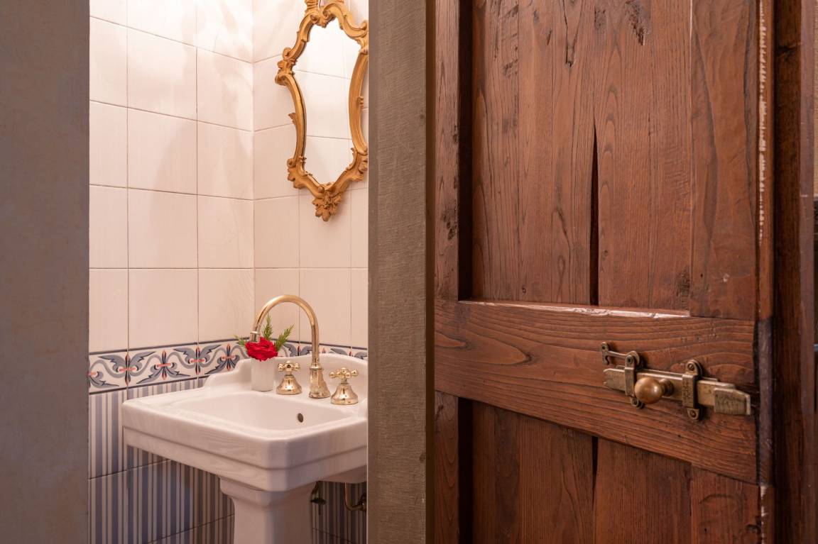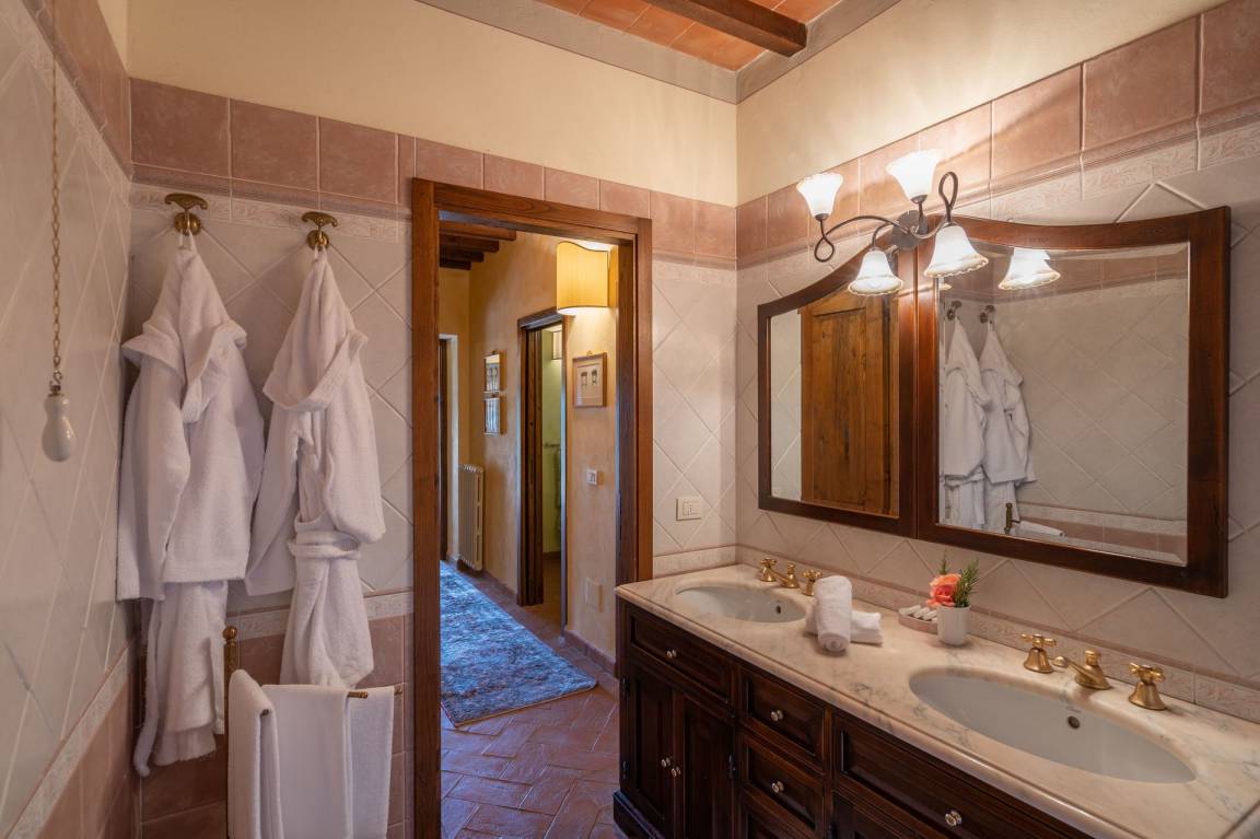 Badezimmer 1: Whirlpool-Badewanne, Waschbecken, WC, Bidet.