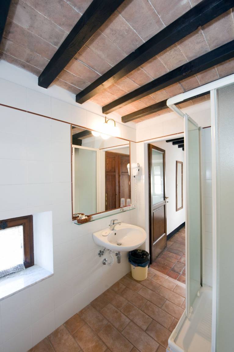 Badezimmer 2: Waschbecken, WC, Dusche.