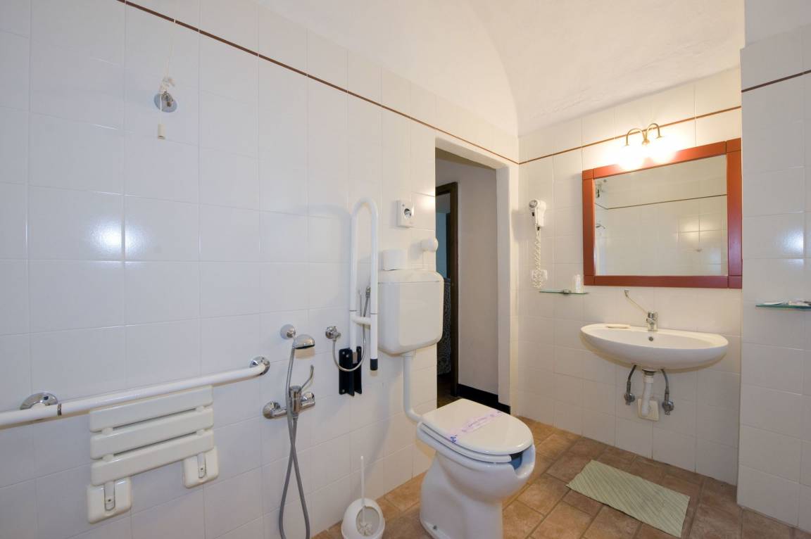 Schlafzimmer mit Bad 3: Doppelbett, Klimaanlage, Fliegengitter, Waschbecken, WC, Bidet, Dusche, Fön.