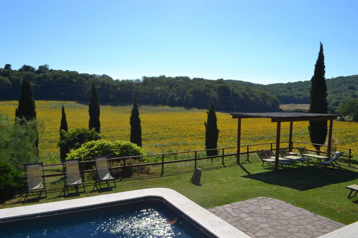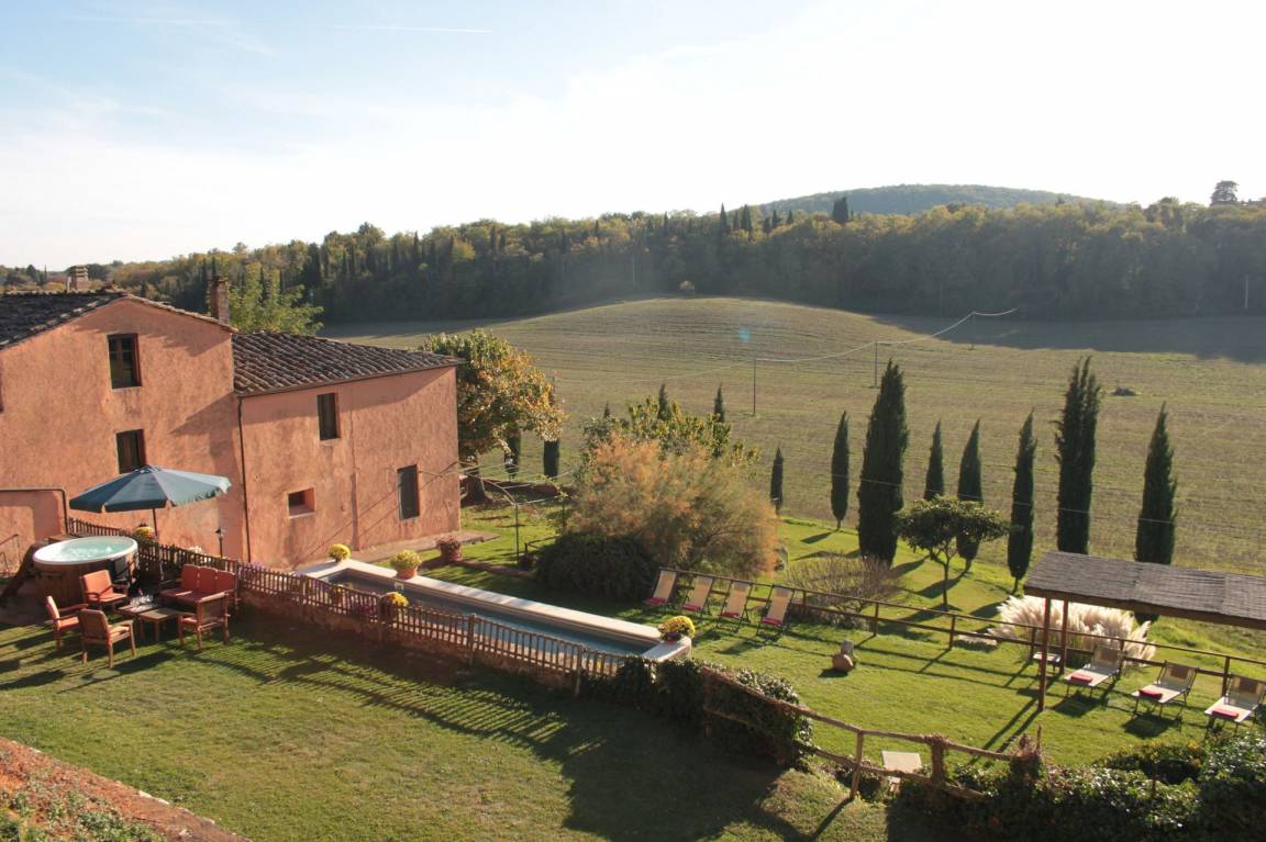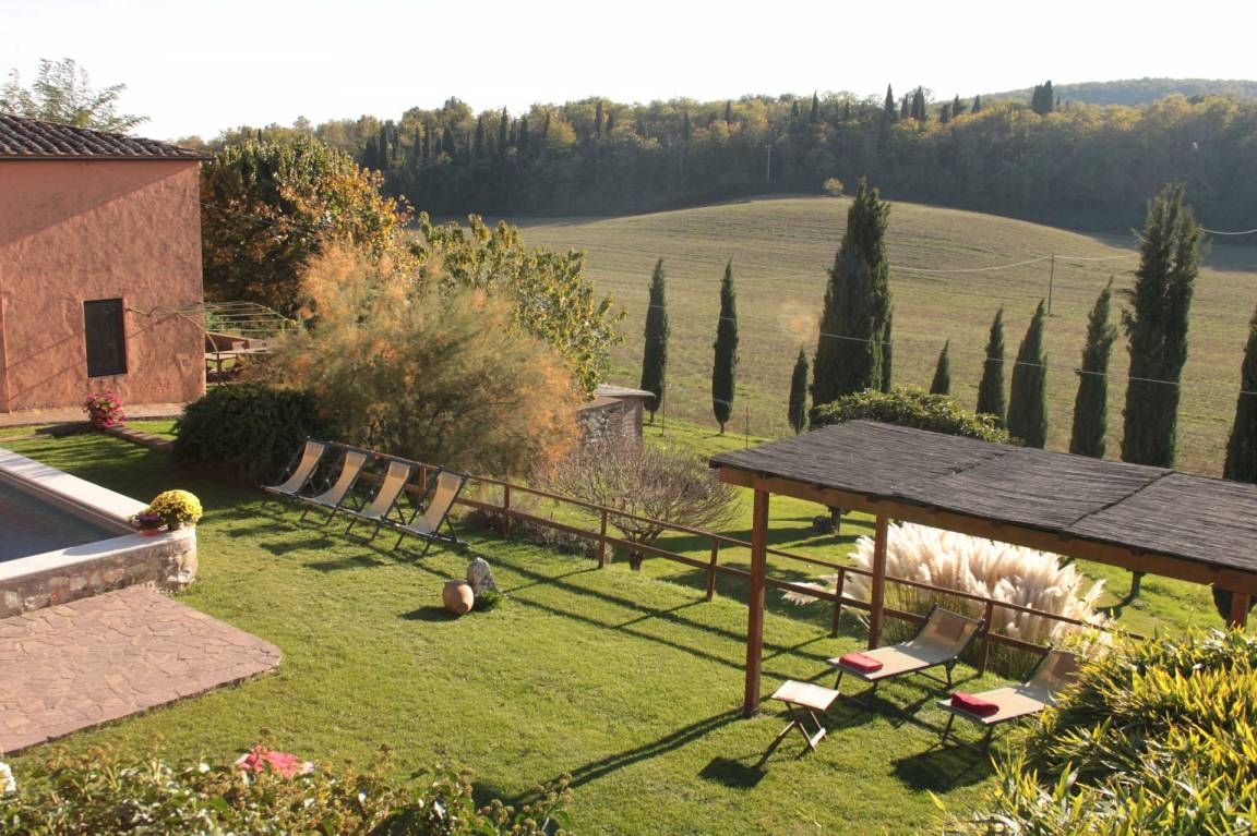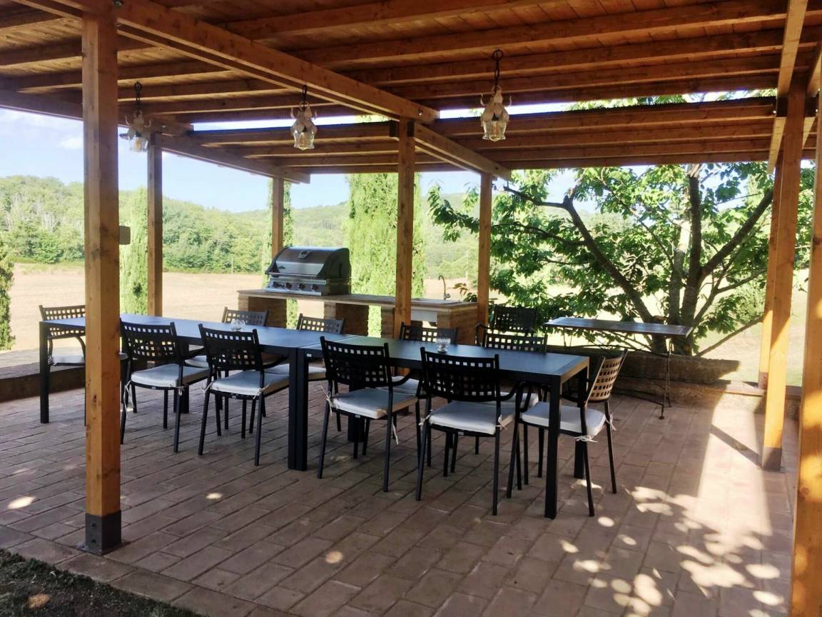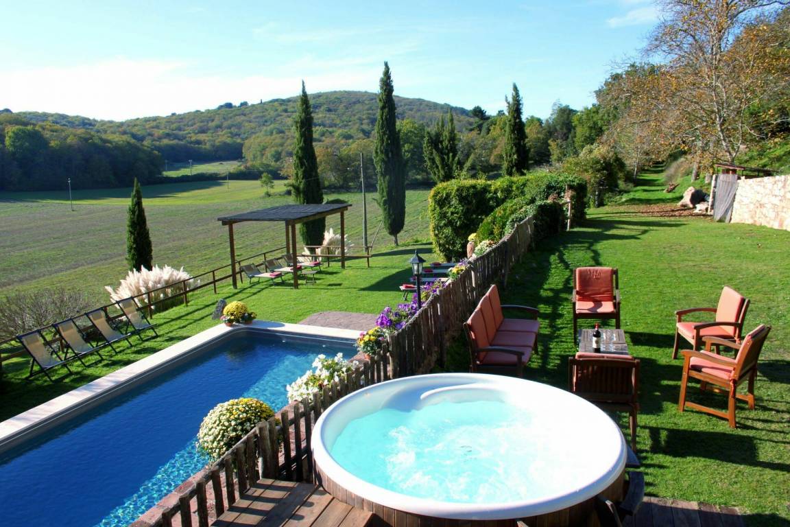 „Villa Le Caggia is the place you are looking for if you want to be soothed and cuddled by the wonderful hills in Tuscany. It has everything you ask for, no need to worry about a thing. Beach towels for 14, complete set of toilet towels and shampoos etc. Professional hairdryer. Fully equipped kitchen even for the most demanding chef. Smart TV with Netflix, xbox etc. Playroom with table tennis, snooker, volleyball pitch! But the best part is outside, big swimming pool and Swedish jacuzzi overlooking an astonishing panorama. No phone signal (hurray!) but there is an excellent WiFi that covers all the property. There is a private wood where with a nice little 3km hike and another path that covers the perimeter of the whole property which is huge. The best of the best is the wild life. The last day I had breakfast with 3 deers _ and in the evening we had wild boars, giant owls, badgers just walking peacefully near the villa. The children were so excited! The villa is quite far from the nearest town so be sure to arrive with a good food storage. However, Mr. Maurizio helped us with every single thing: He was our 'Genie' and made all our wishes come true everyday! If you want to escape from reality and immerse yourself in a 5 relaxing paradise, be sure to try this stay! I will definitely come back!“
