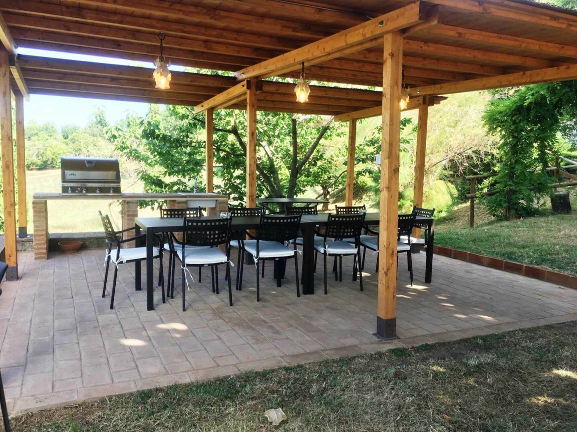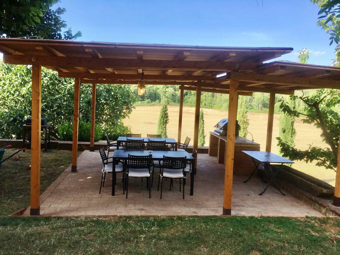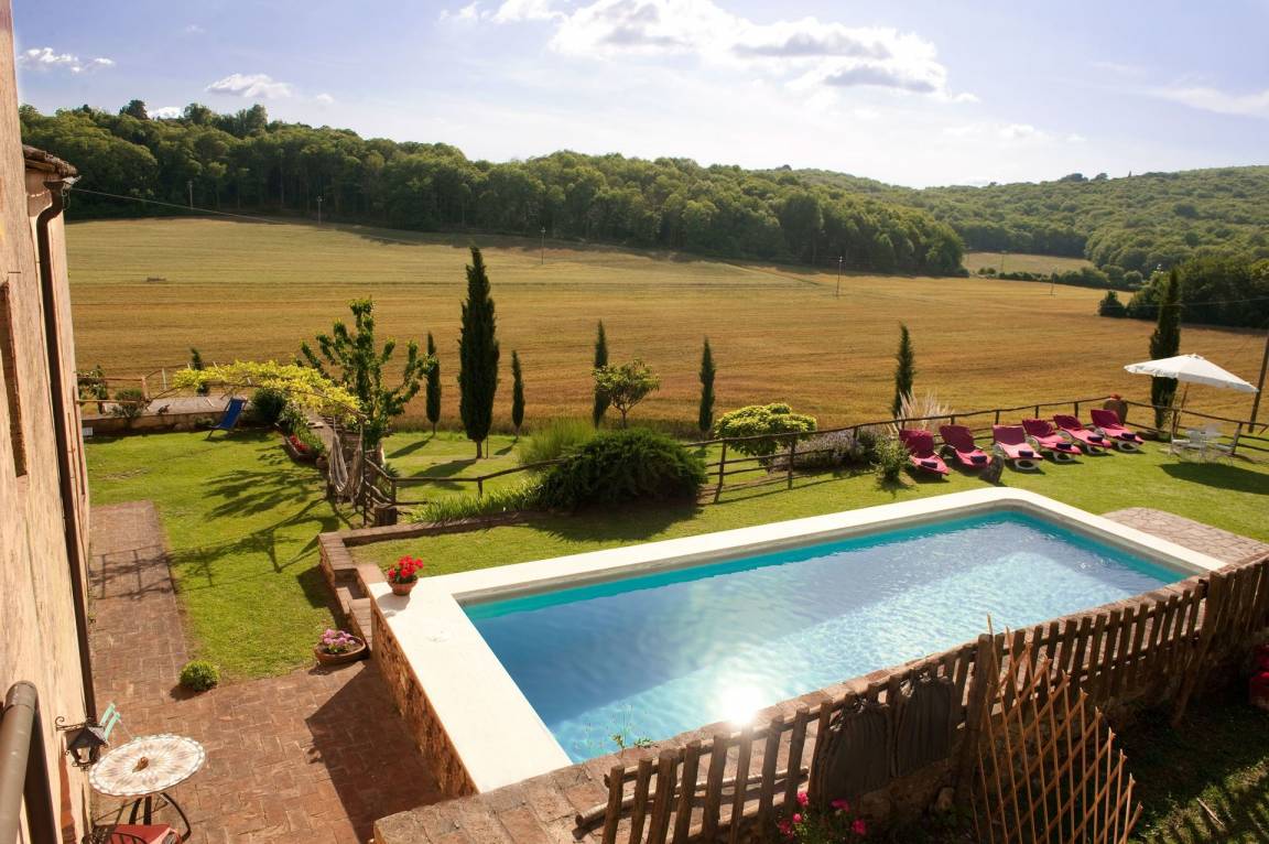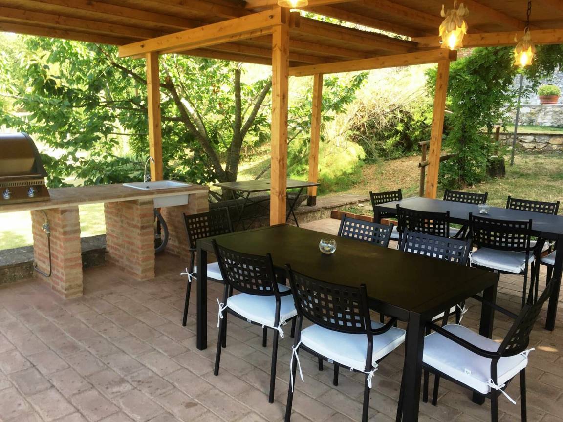 „Villa Le Caggia is the place you are looking for if you want to be soothed and cuddled by the wonderful hills in Tuscany. It has everything you ask for, no need to worry about a thing. Beach towels for 14, complete set of toilet towels and shampoos etc. Professional hairdryer. Fully equipped kitchen even for the most demanding chef. Smart TV with Netflix, xbox etc. Playroom with table tennis, snooker, volleyball pitch! But the best part is outside, big swimming pool and Swedish jacuzzi overlooking an astonishing panorama. No phone signal (hurray!) but there is an excellent WiFi that covers all the property. There is a private wood where with a nice little 3km hike and another path that covers the perimeter of the whole property which is huge. The best of the best is the wild life. The last day I had breakfast with 3 deers _ and in the evening we had wild boars, giant owls, badgers just walking peacefully near the villa. The children were so excited! The villa is quite far from the nearest town so be sure to arrive with a good food storage. However, Mr. Maurizio helped us with every single thing: He was our 'Genie' and made all our wishes come true everyday! If you want to escape from reality and immerse yourself in a 5 relaxing paradise, be sure to try this stay! I will definitely come back!“
