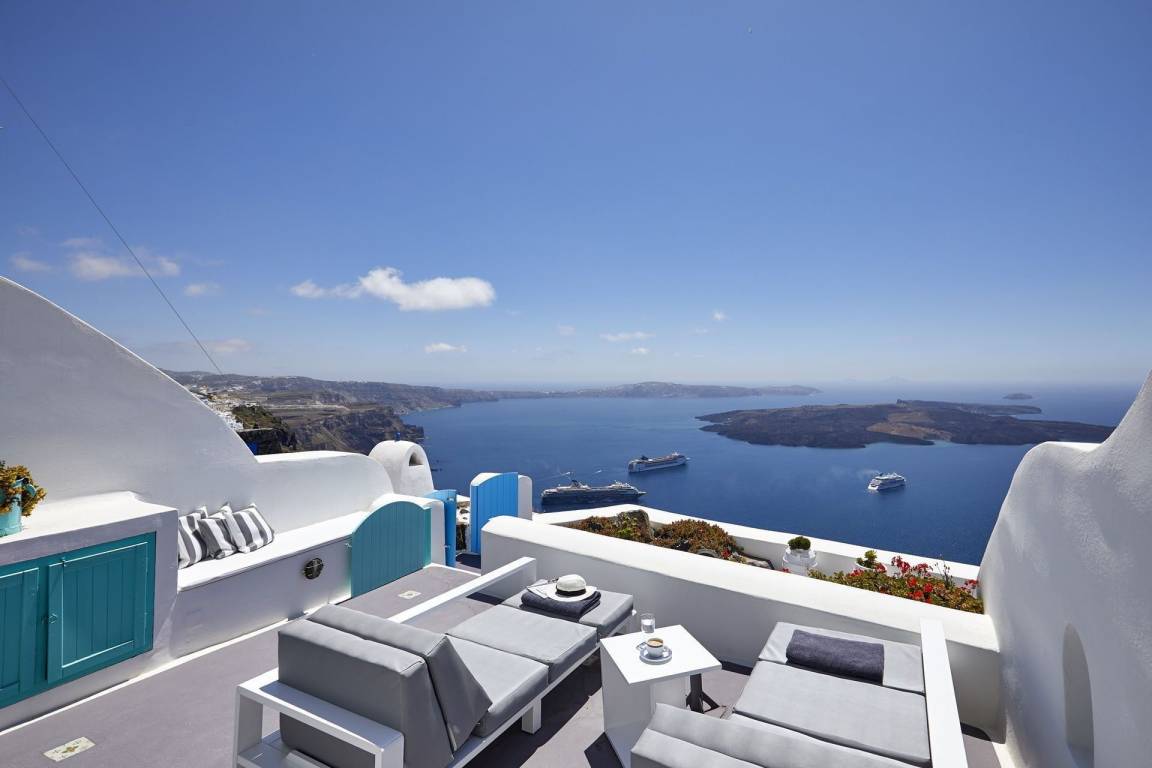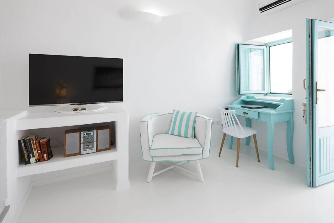 Die Ferienwohnung liegt in Santorini und bietet einen Meerblick.
