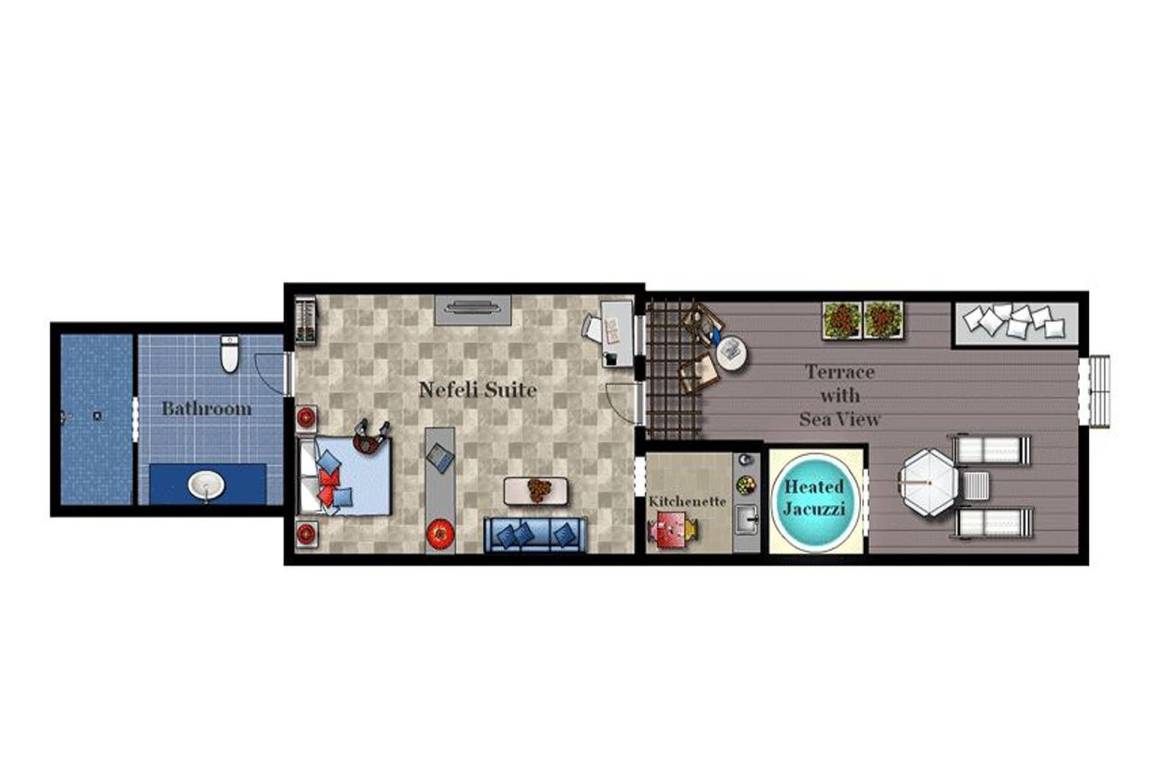 Die Ferienwohnung verfügt über eine Klimaanlage und eine Heizanlage. Ein Satellitenfernsehen steht zur Verfügung. Das Bad ist mit einer Whirlpool-Badewanne ausgestattet. Die private Terrasse ist mit Terrassenmöbeln und einer Außen-Whirlpool ausgestattet.