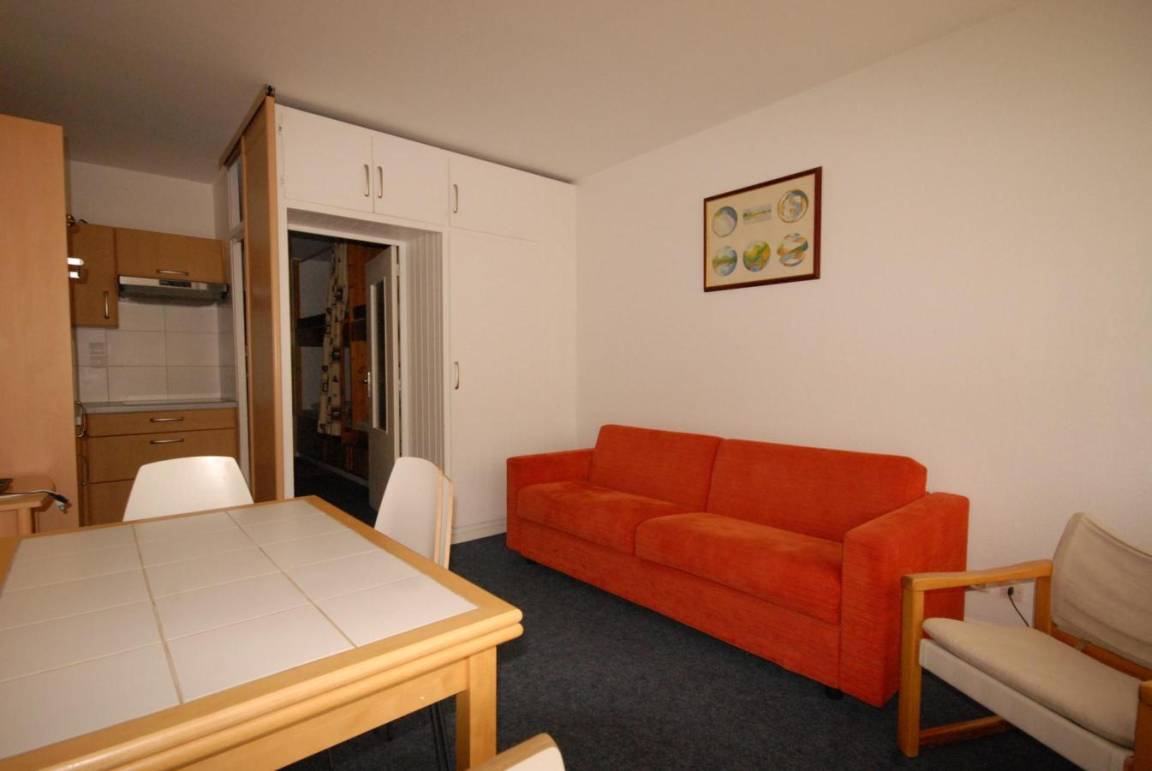 Fläche von ungefähr 27 m². 6te Etage. Orientierung : Ost. Blick berg. Wohnzimmer ab 16.00 m² mit Klappschlafcouch. Alkoven ab 8.00 m² mit 4 Stockbetten. Küche mit Kaffeemaschine, kleiner Backofen mit Mikrowellenfunktion, Toaster, Geschirrspülmaschine, 4 Glaskeramikkochfelder, Kühlschrank. Badezimmer ab 2.00 m² mit Badewanne, Waschbecken. separates WC. Balkon. Die oberen Betten sind nicht für Kinder unter 6 Jahren geeignet.